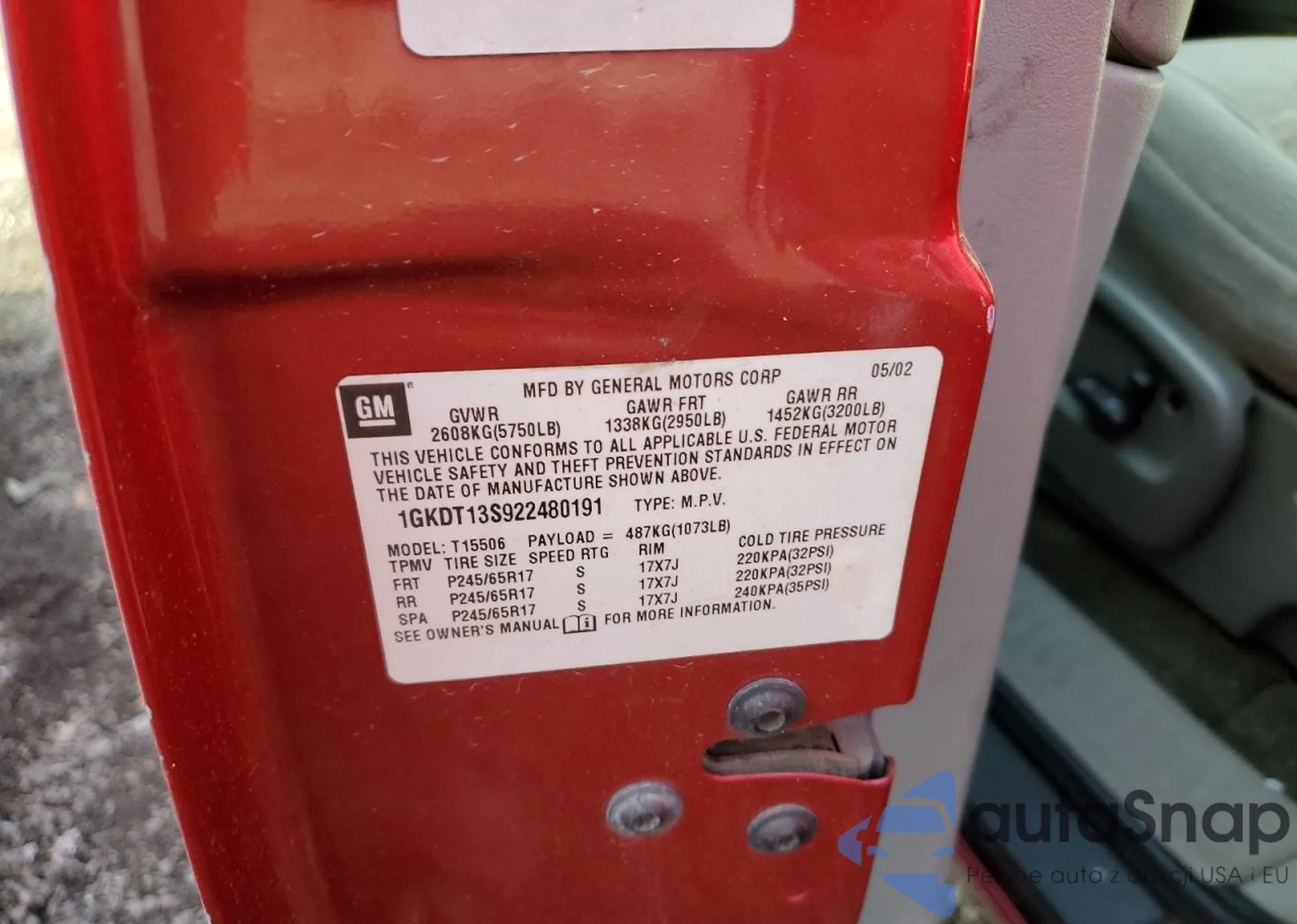 VIN: 1GKDT13S922480191