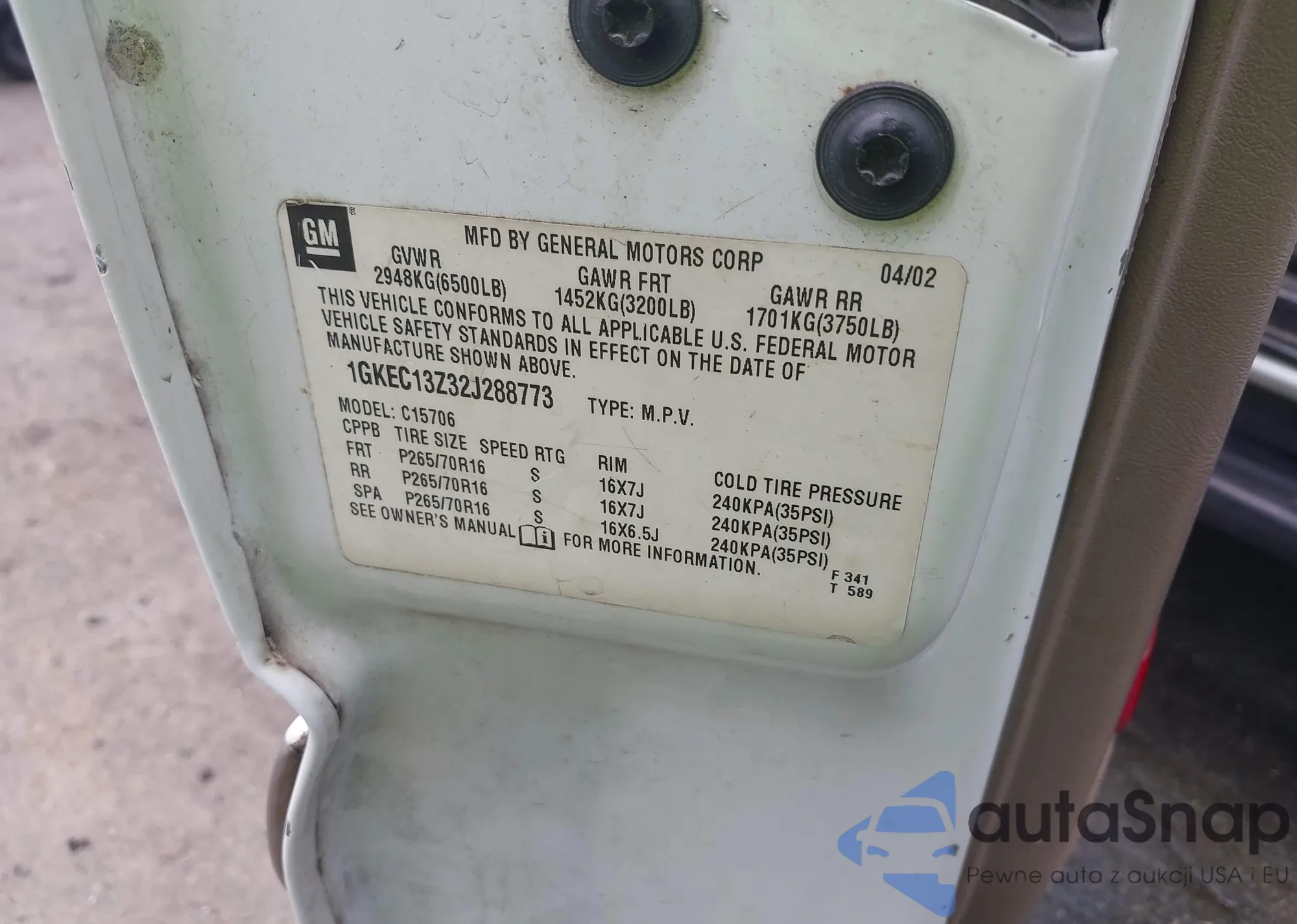 • VIN: 1GKEC13Z32J288773