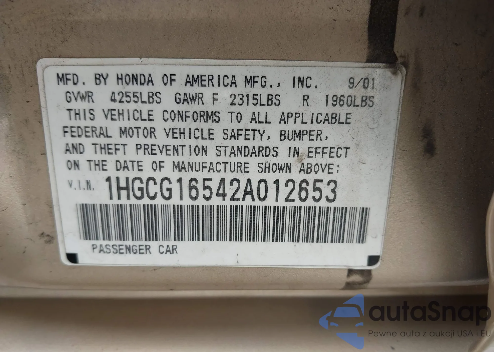 VIN: 1HGCG16542A012653