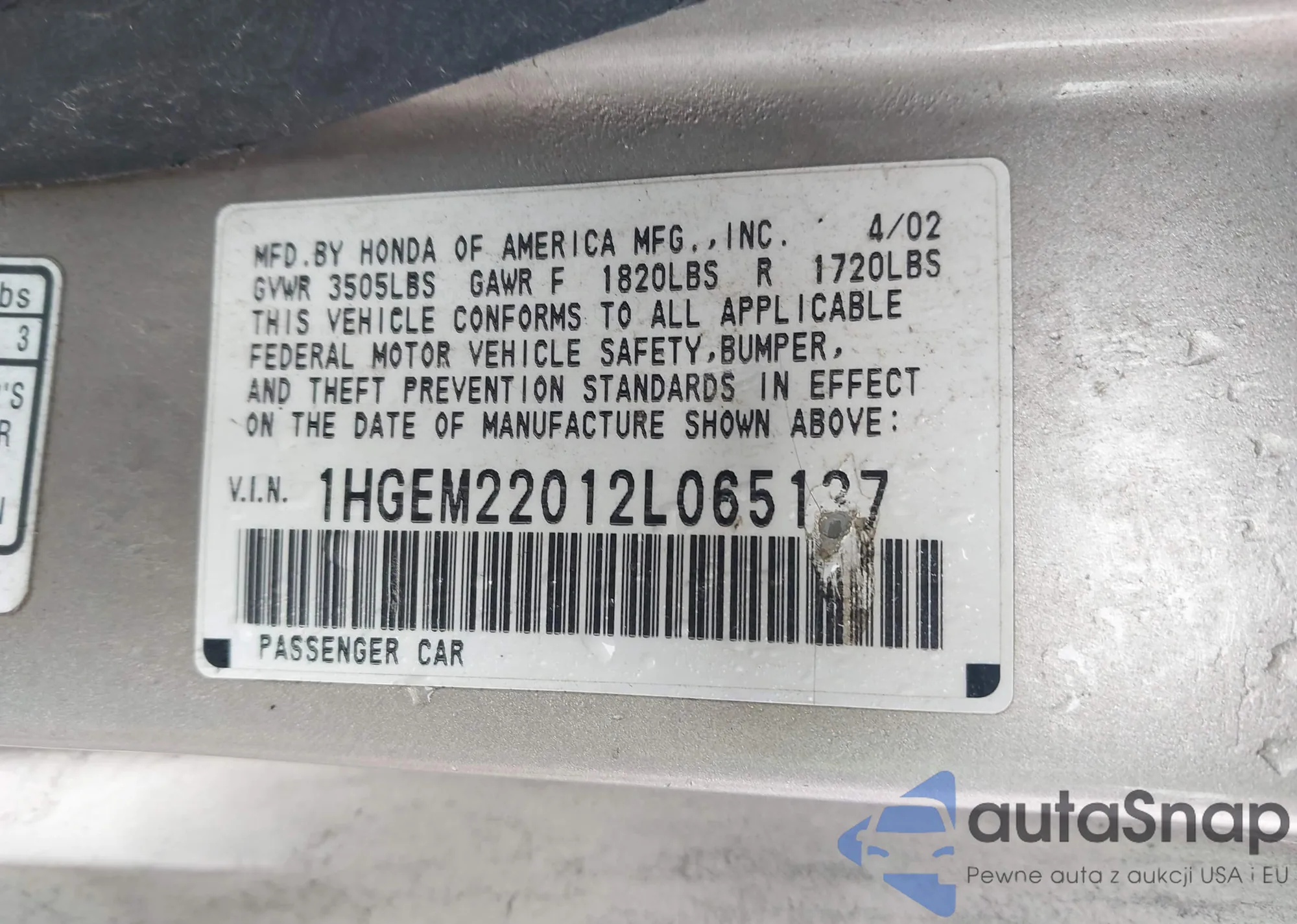 VIN: 1HGEM22012L065137