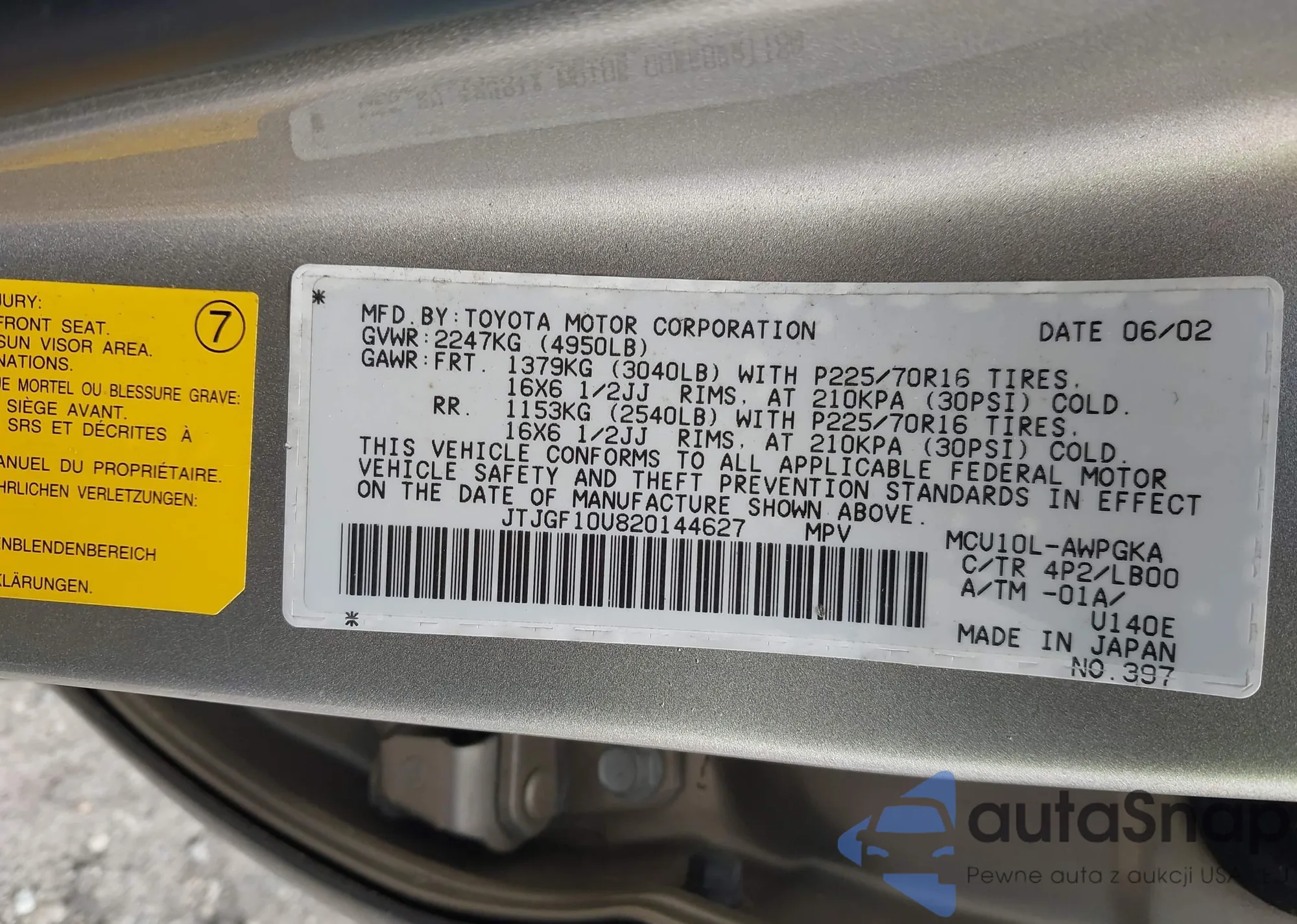 VIN: JTJGF10U820144627