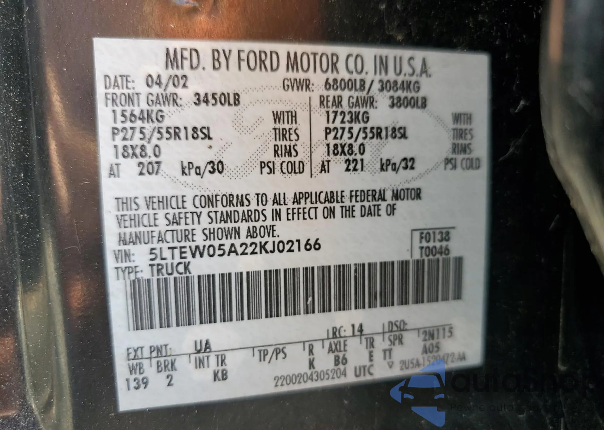 VIN: 5LTEW05A22KJ02166