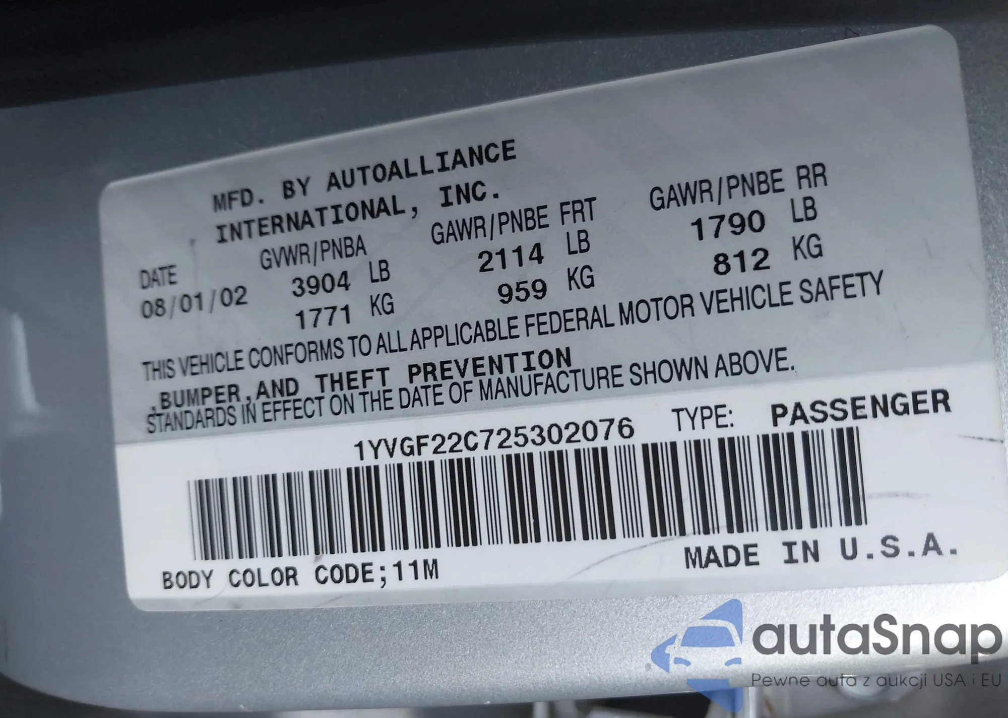 VIN: 1YVGF22C725302076