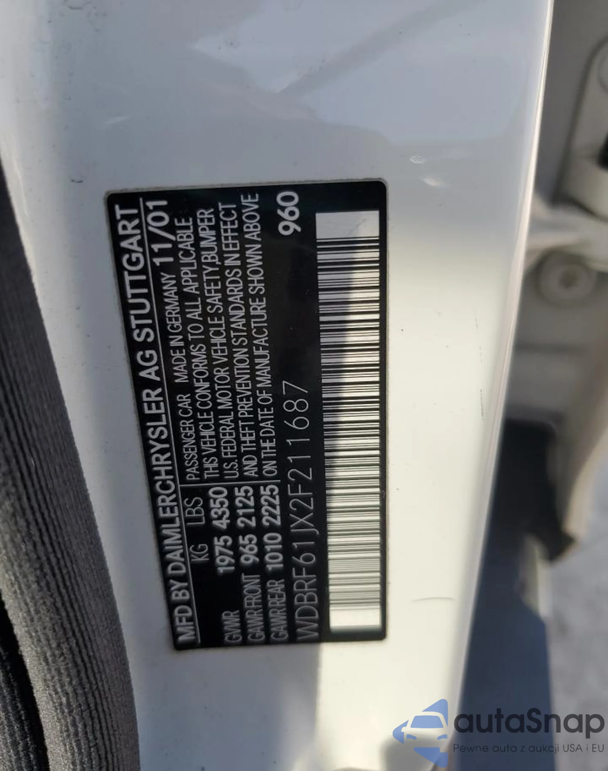 The car Mercedes-Benz C-klasse 2002 (VIN WDBRF61JX2F211687) has not been auctioned before. The documents are clean, and the mileage matches or is below the market average. Sold by an insurance company – we recommend purchase. Delivery to the port will take approx. 6–8 weeks.