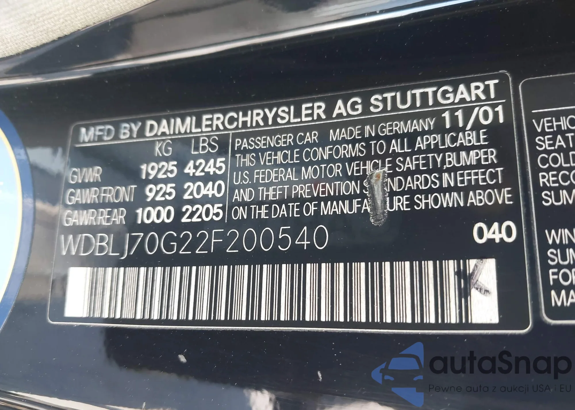 VIN: WDBLJ70G22F200540