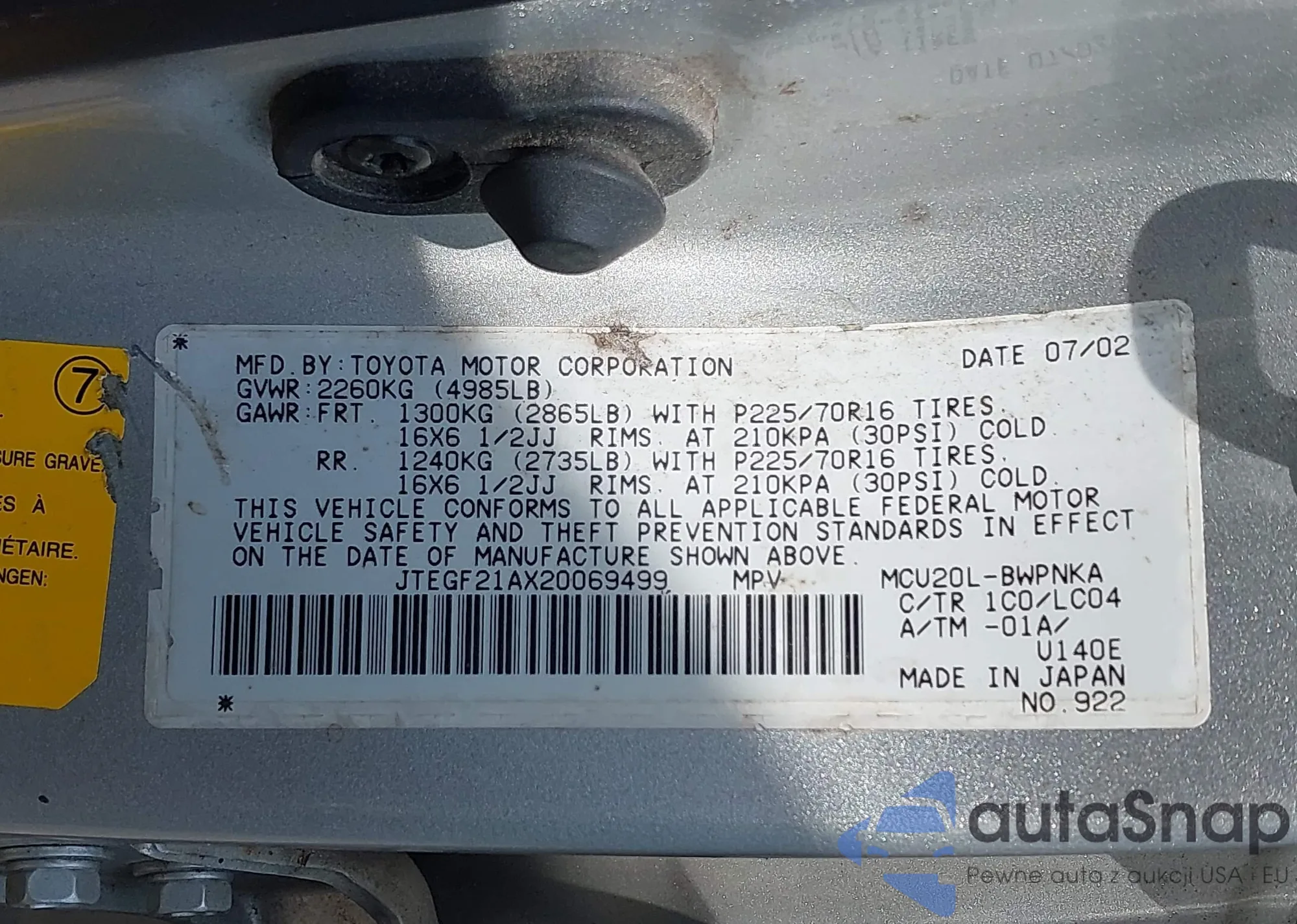 VIN: JTEGF21AX20069499