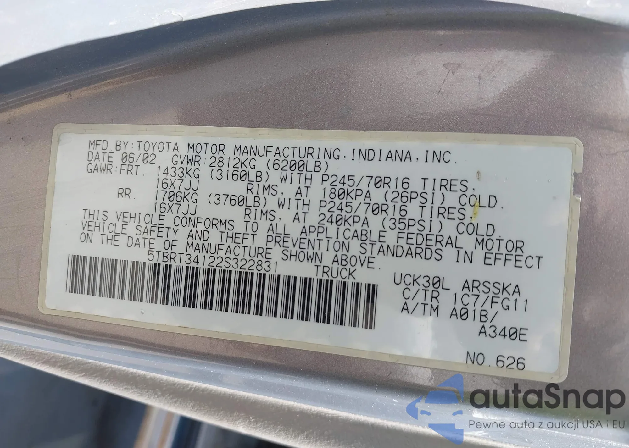 VIN: 5TBRT34122S322831