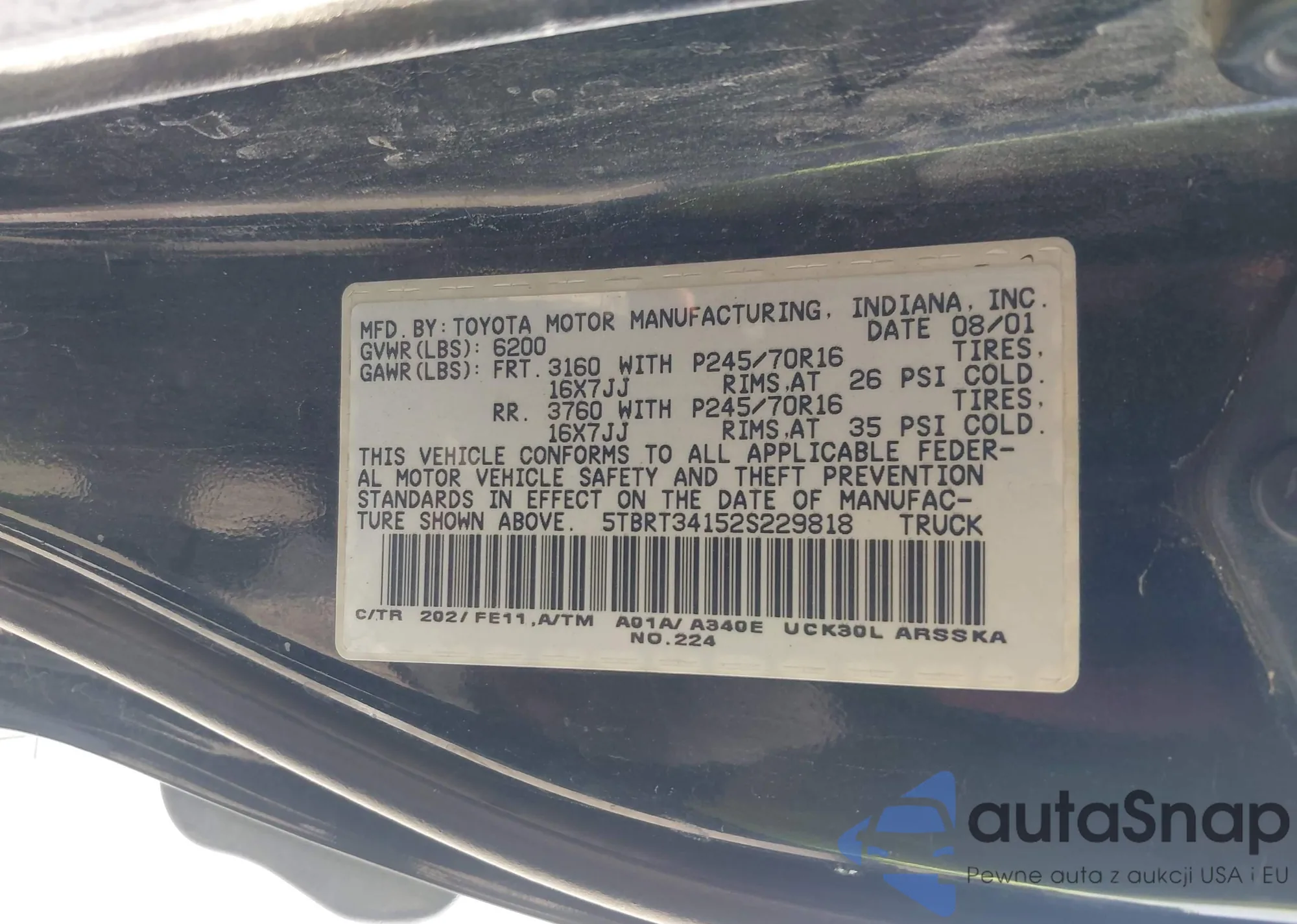 VIN: 5TBRT34152S229818