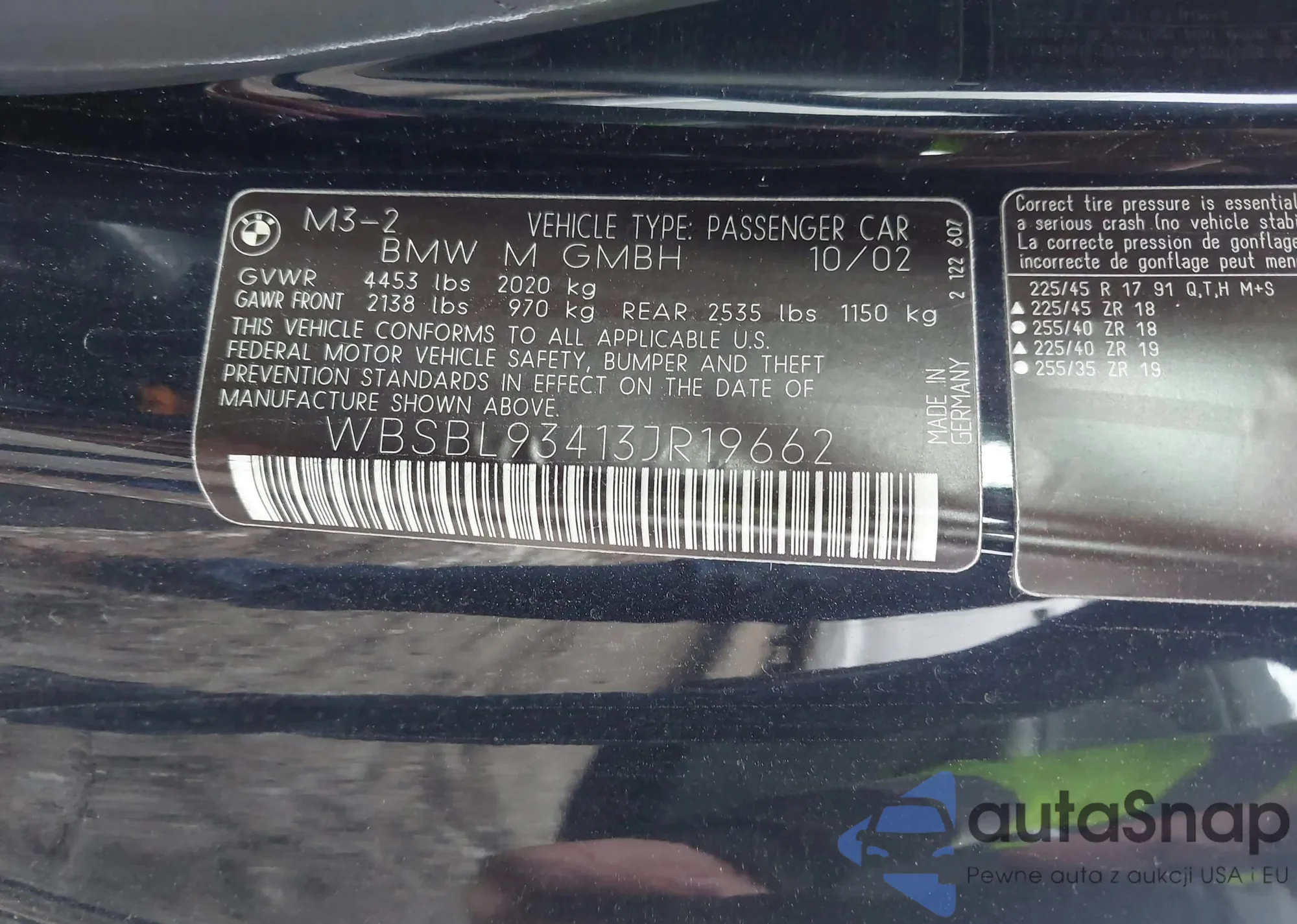 VIN: WBSBL93413JR19662