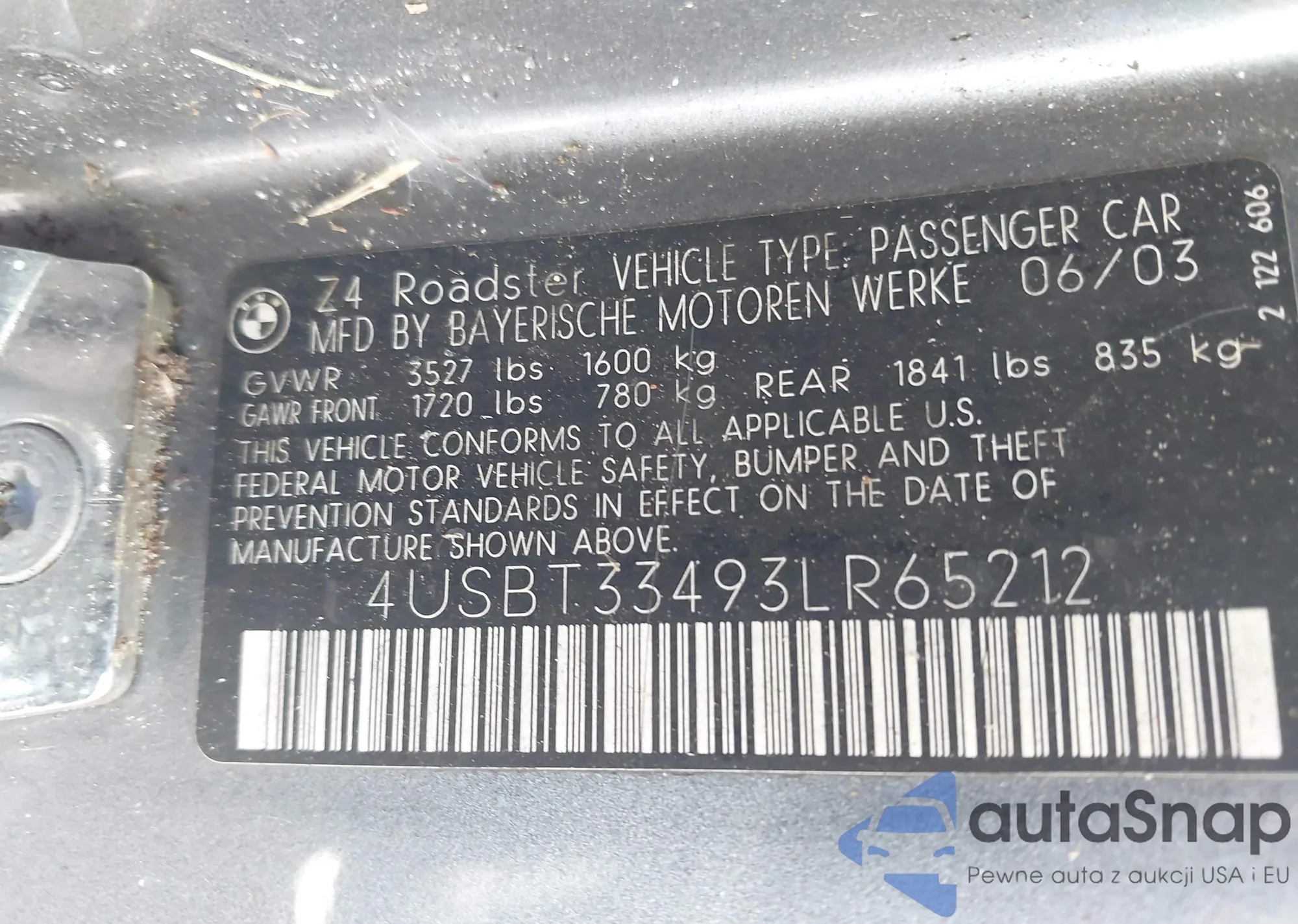 The car BMW Z4 2003 (VIN 4USBT33493LR65212) is sold by an unverified seller. We recommend checking the Carfax report and confirming registration possibilities before purchase.