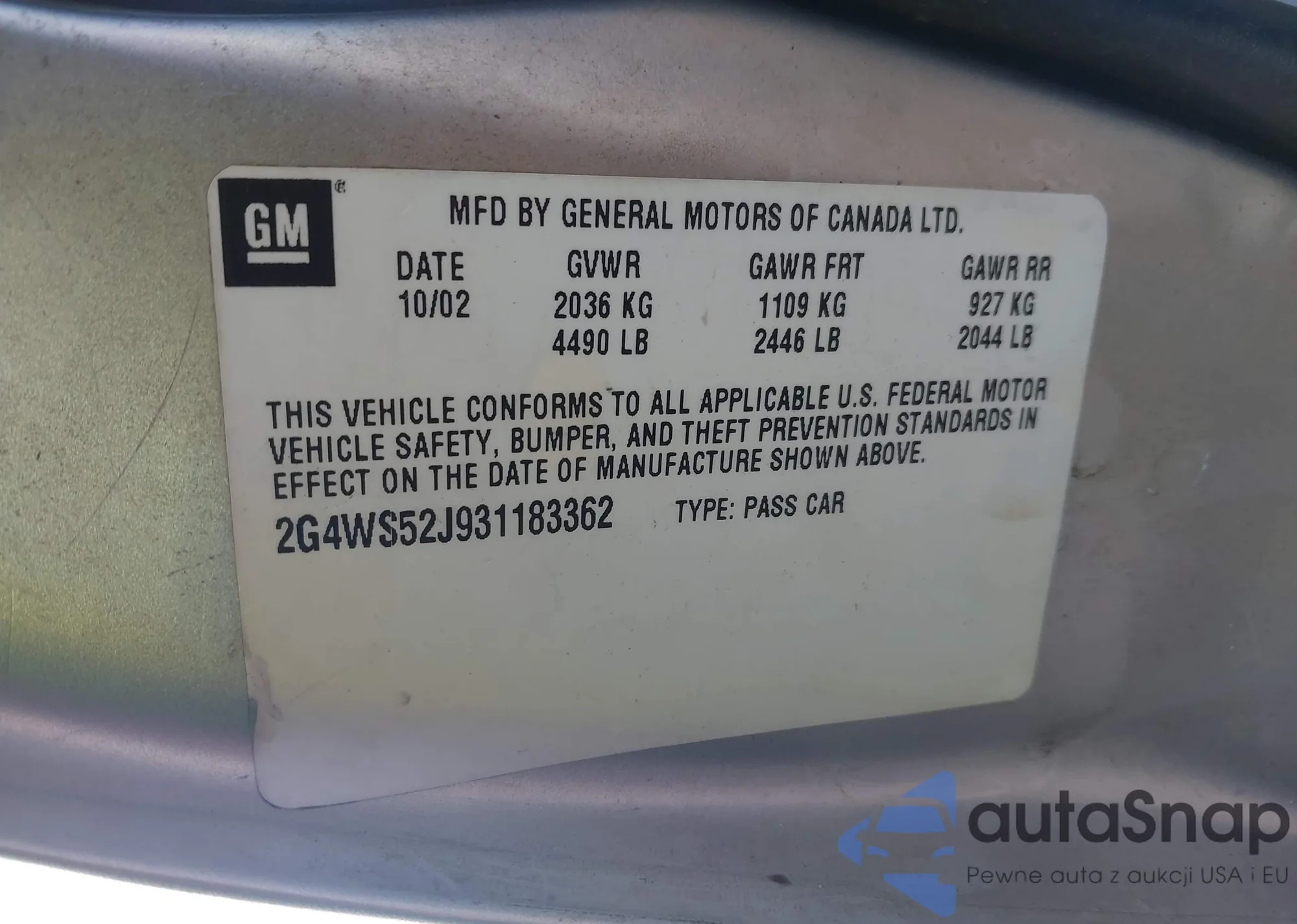 The car Buick Century 2003 (VIN 2G4WS52J931183362) is sold by an unverified seller. We recommend checking the Carfax report and confirming registration possibilities before purchase.
