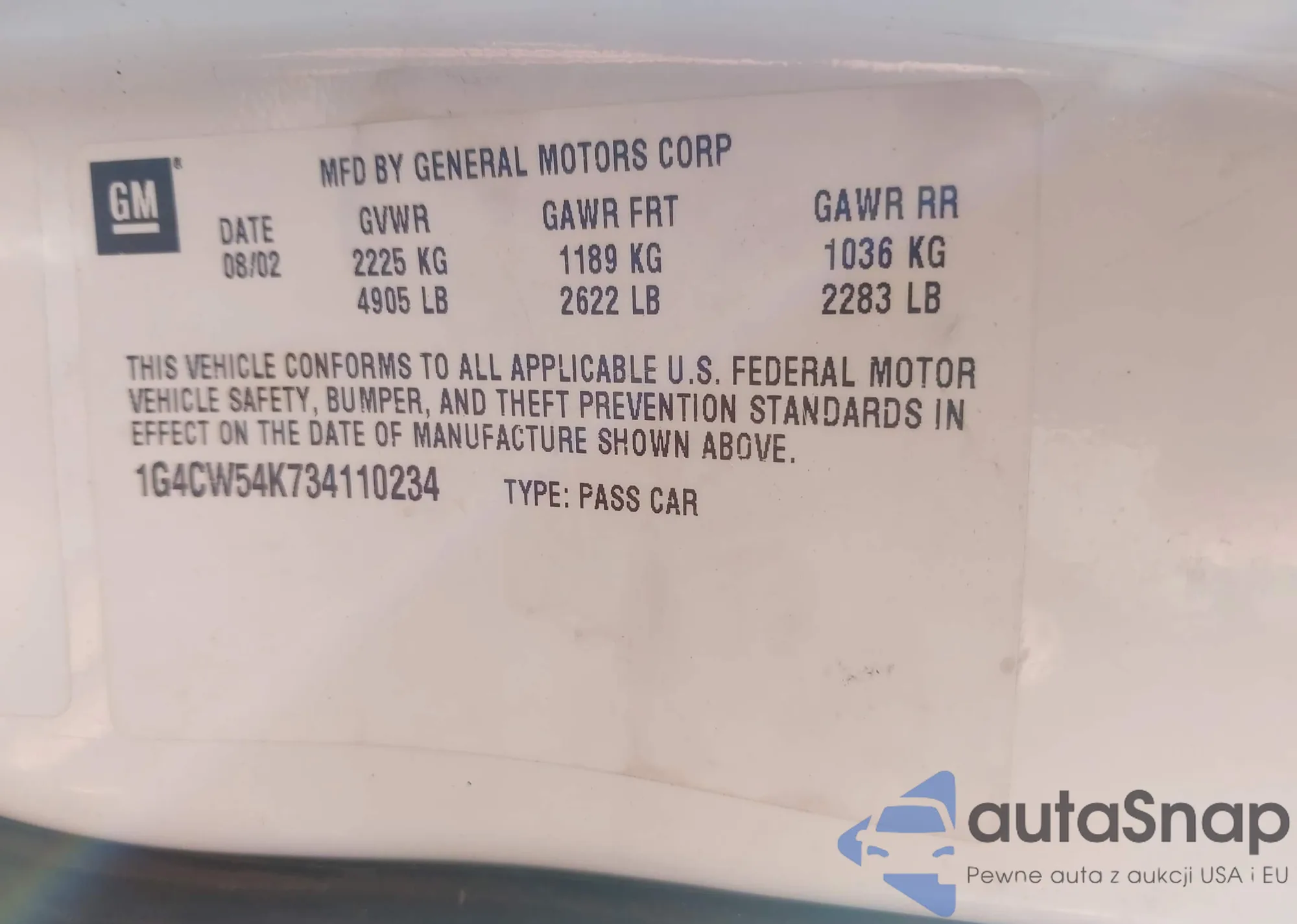 • VIN: 1G4CW54K734110234
