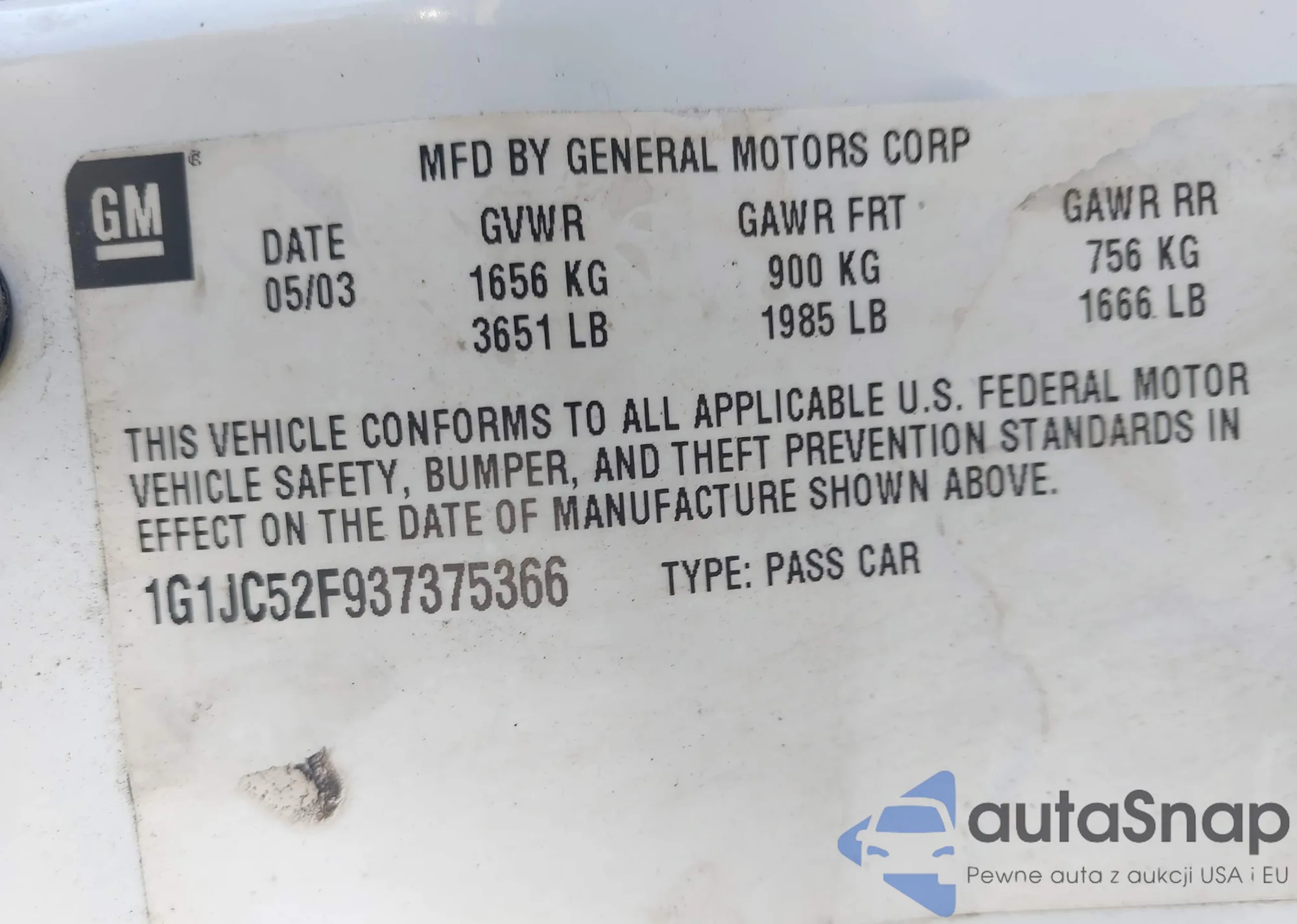 VIN: 1G1JC52F937375366