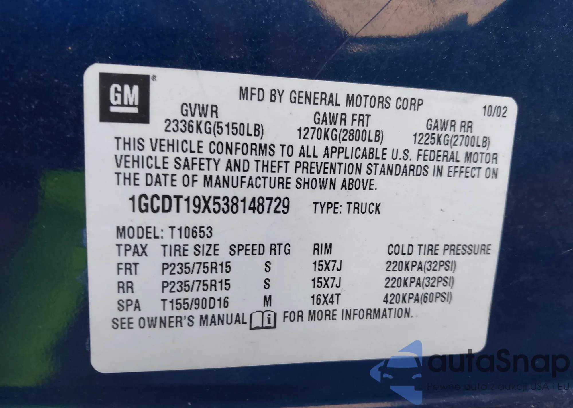 VIN: 1GCDT19X538148729