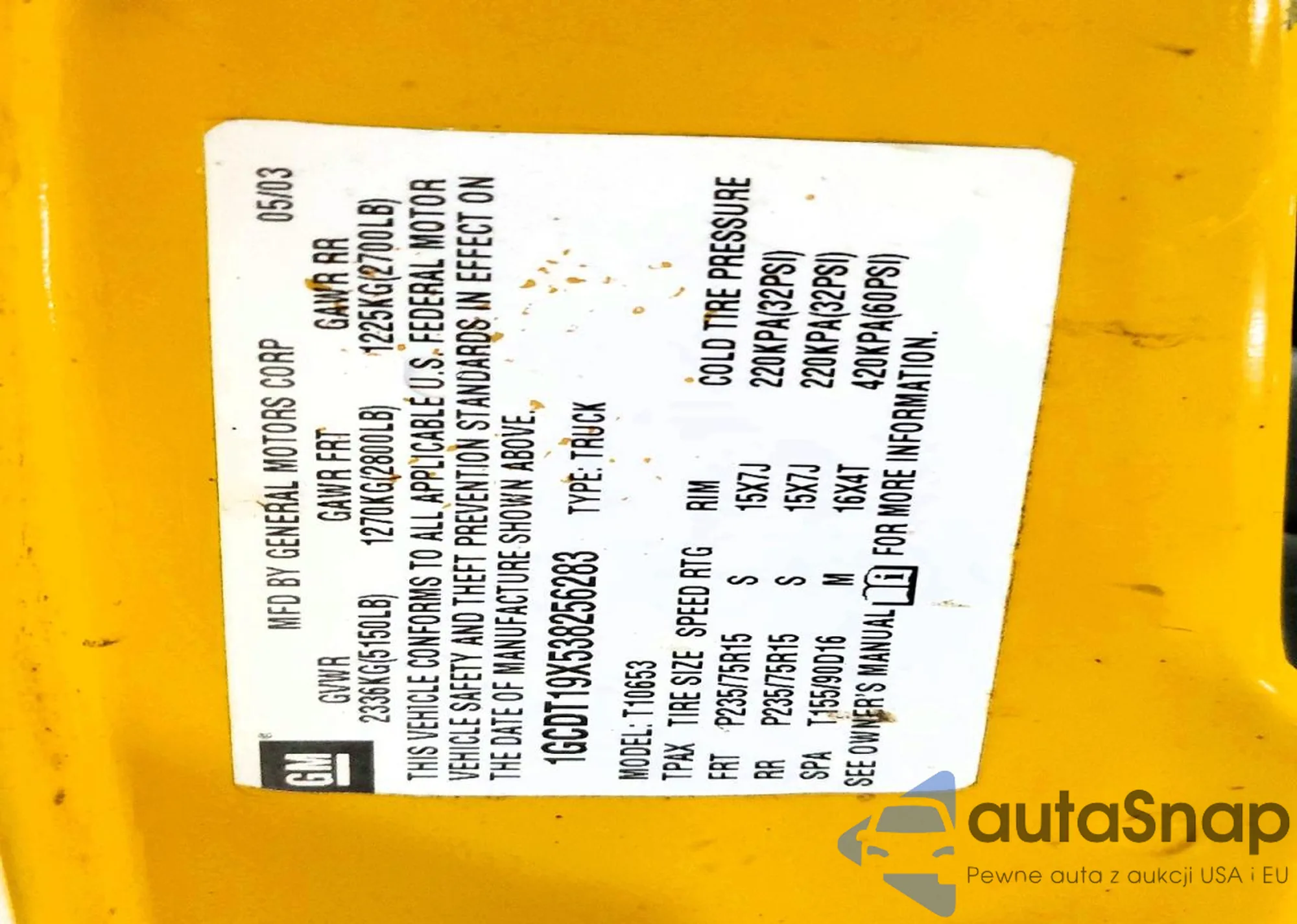 VIN: 1GCDT19X538256283