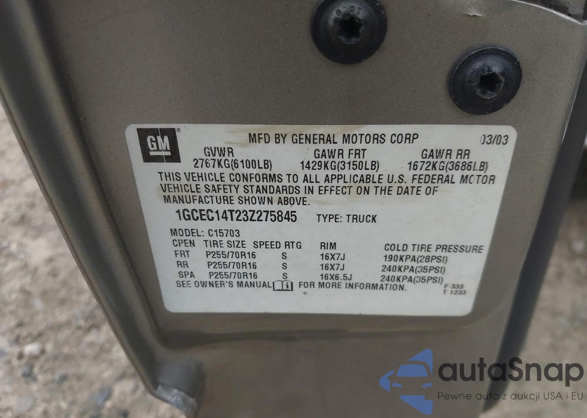 VIN: 1GCEC14T23Z275845