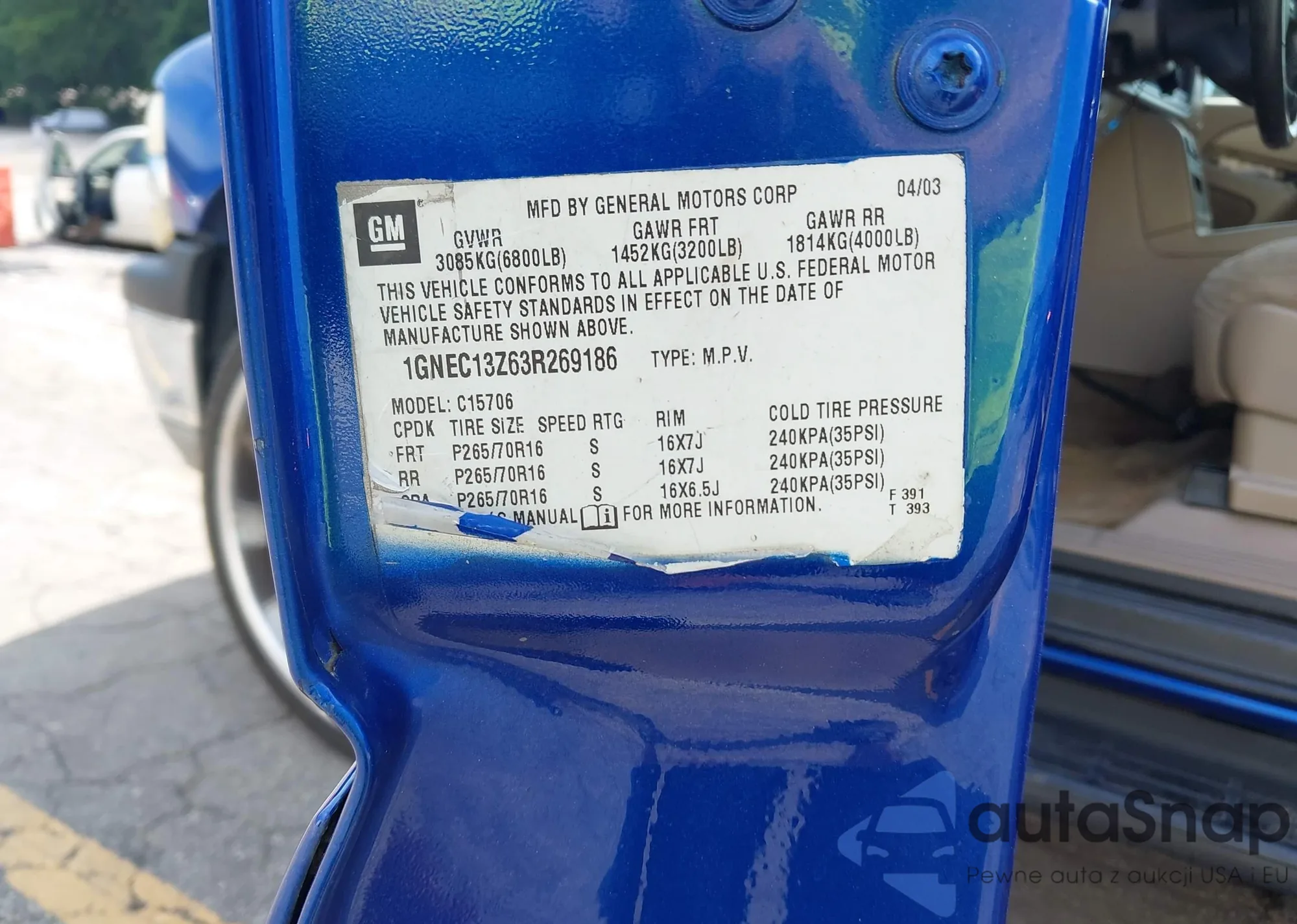 VIN: 1GNEC13Z63R269186