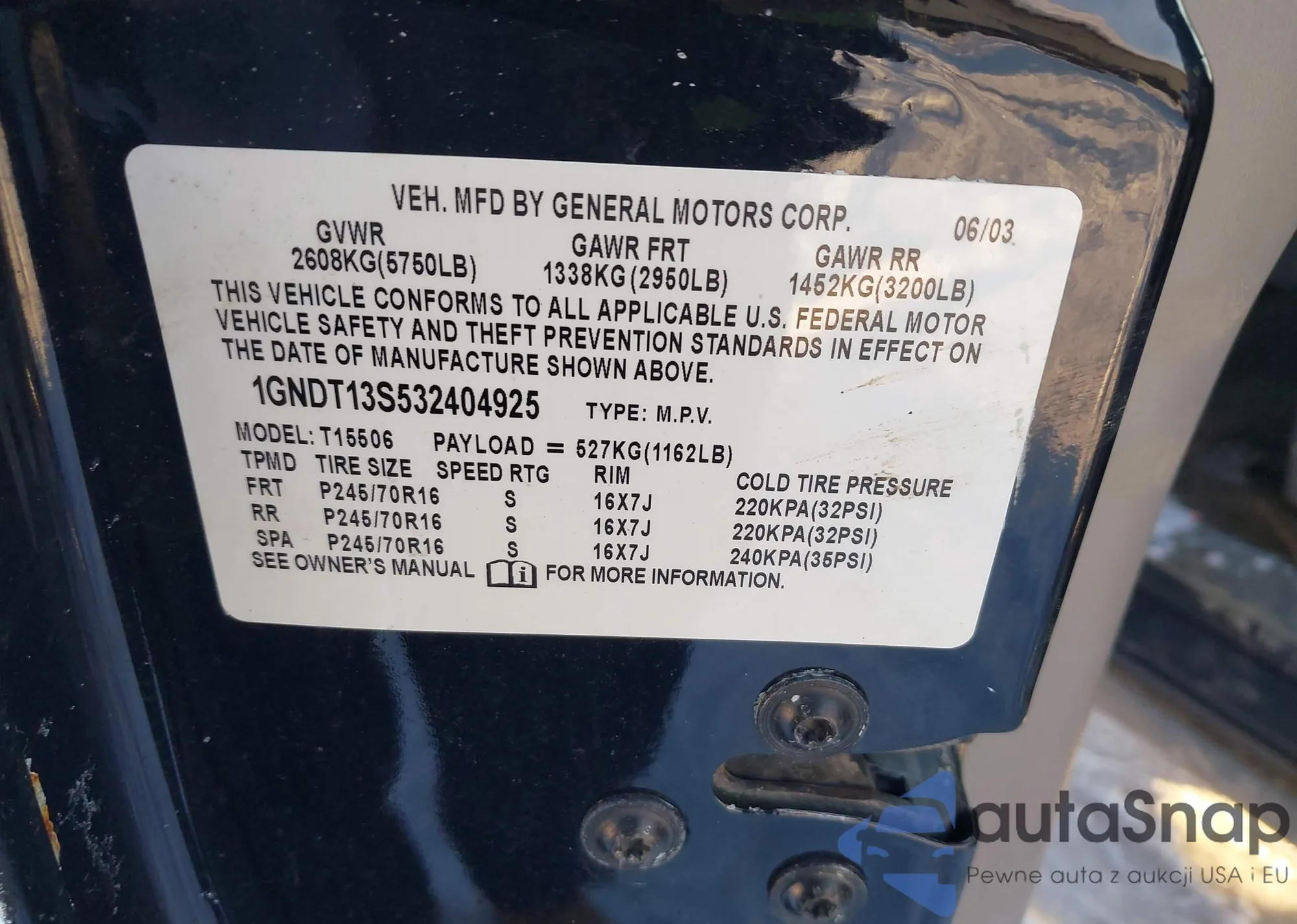 • VIN: 1GNDT13S532404925