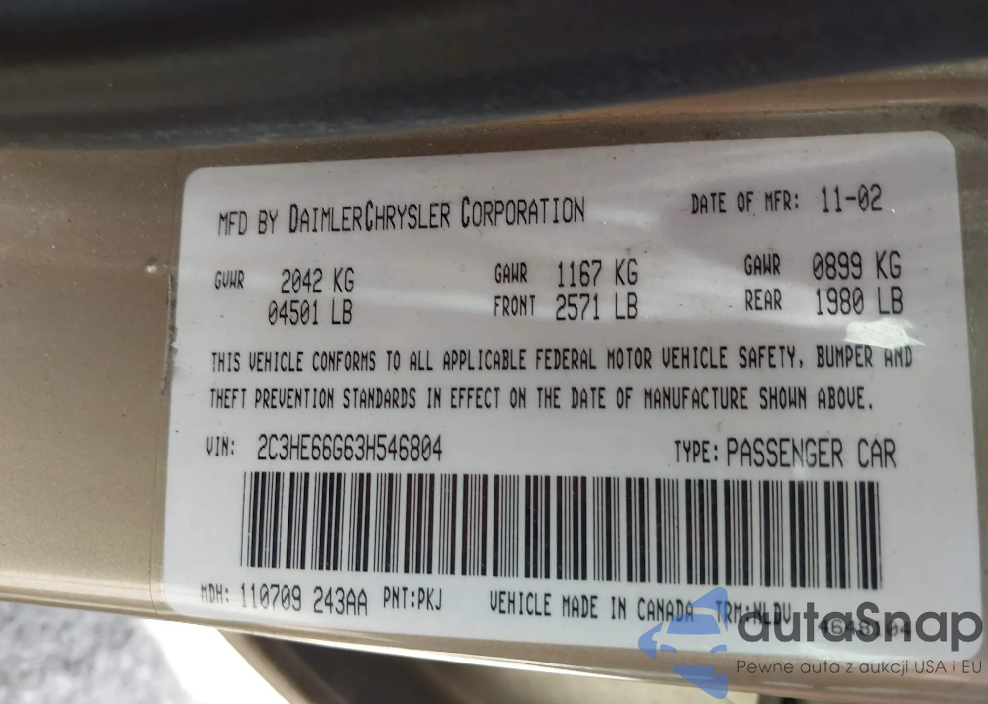 VIN: 2C3HE66G63H546804