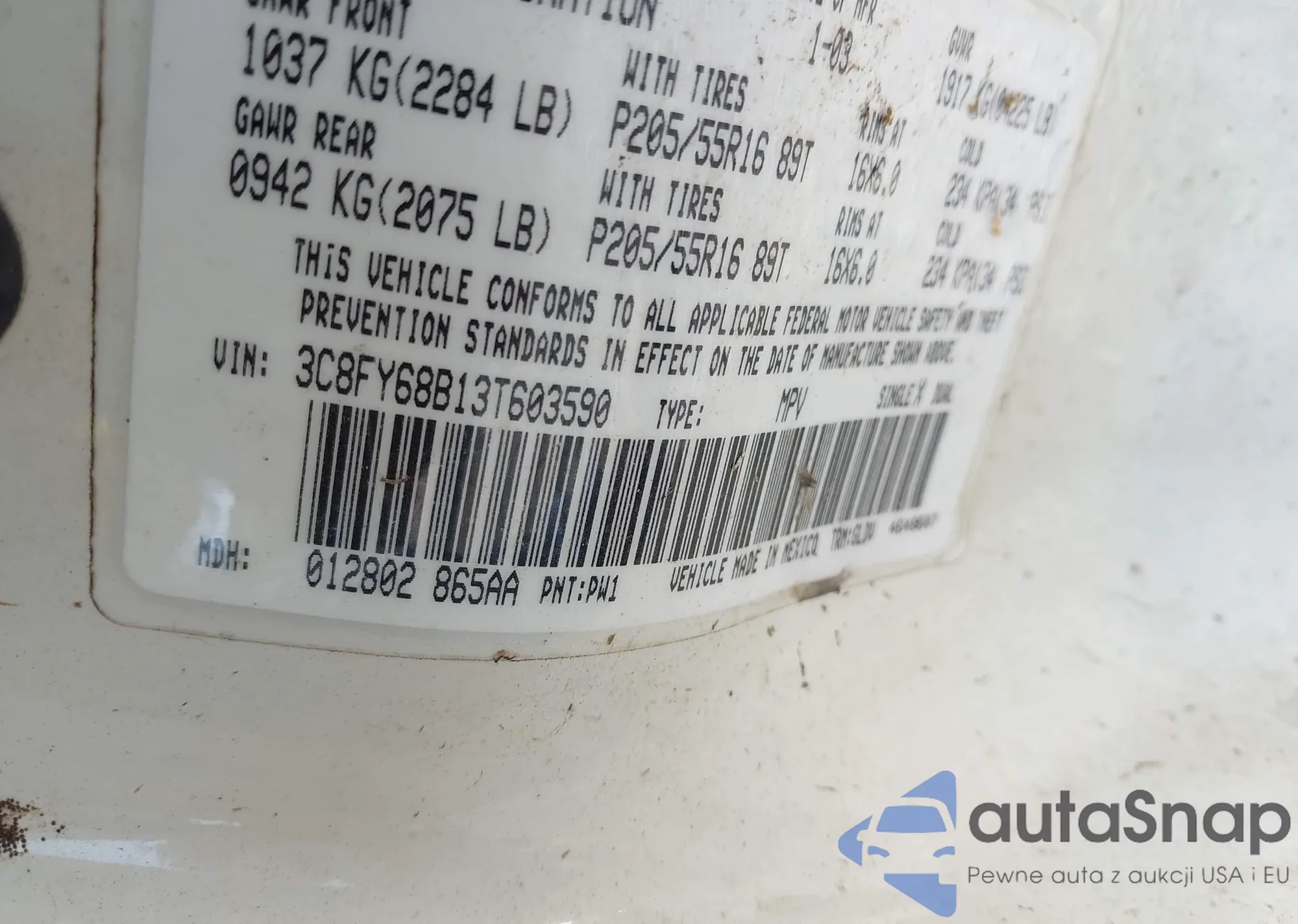 VIN: 3C8FY68B13T603590