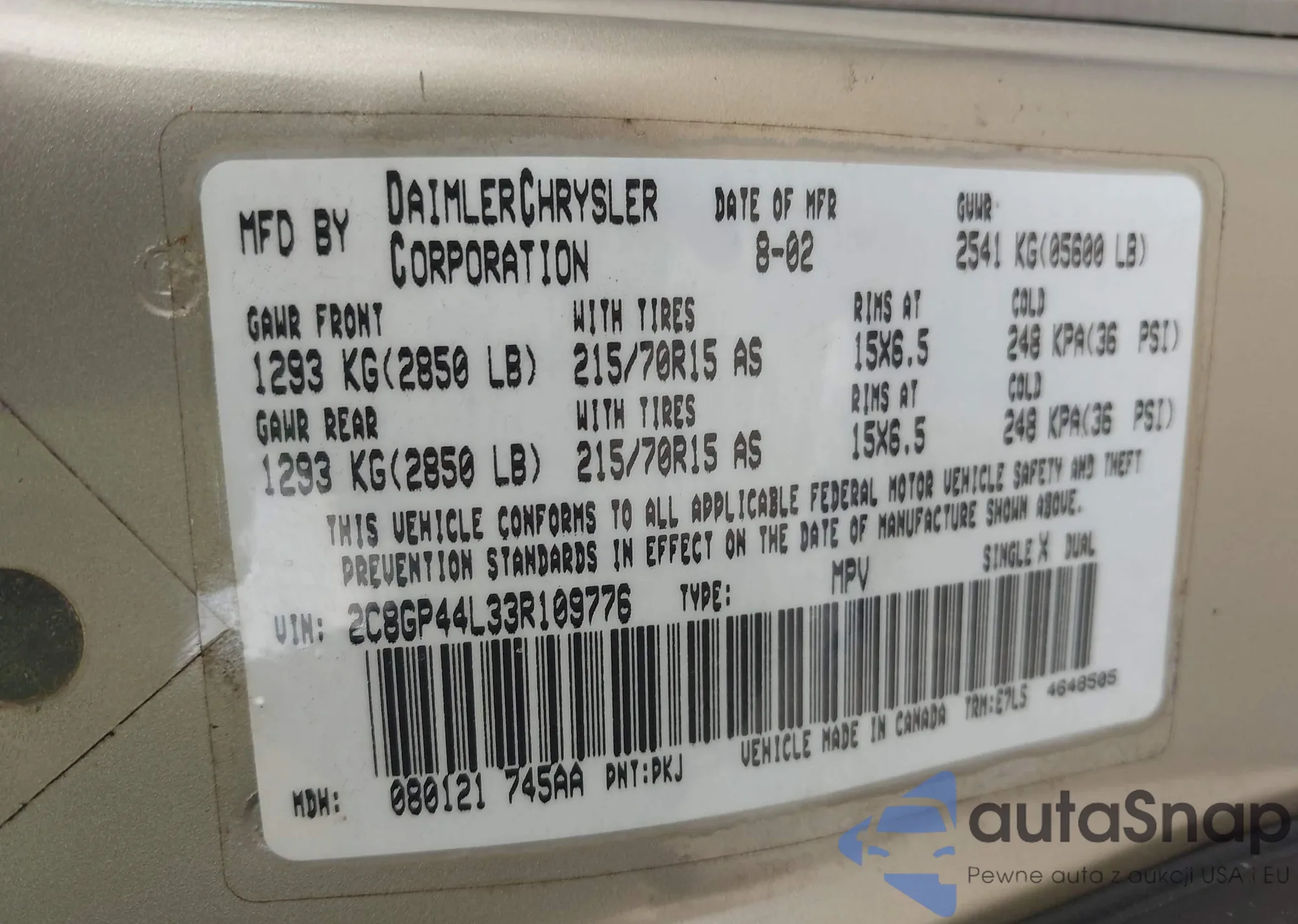 The car Chrysler Town & Country 2003 (VIN 2C8GP44L33R109776) is sold by an unverified seller. We recommend checking the Carfax report and confirming registration possibilities before purchase.