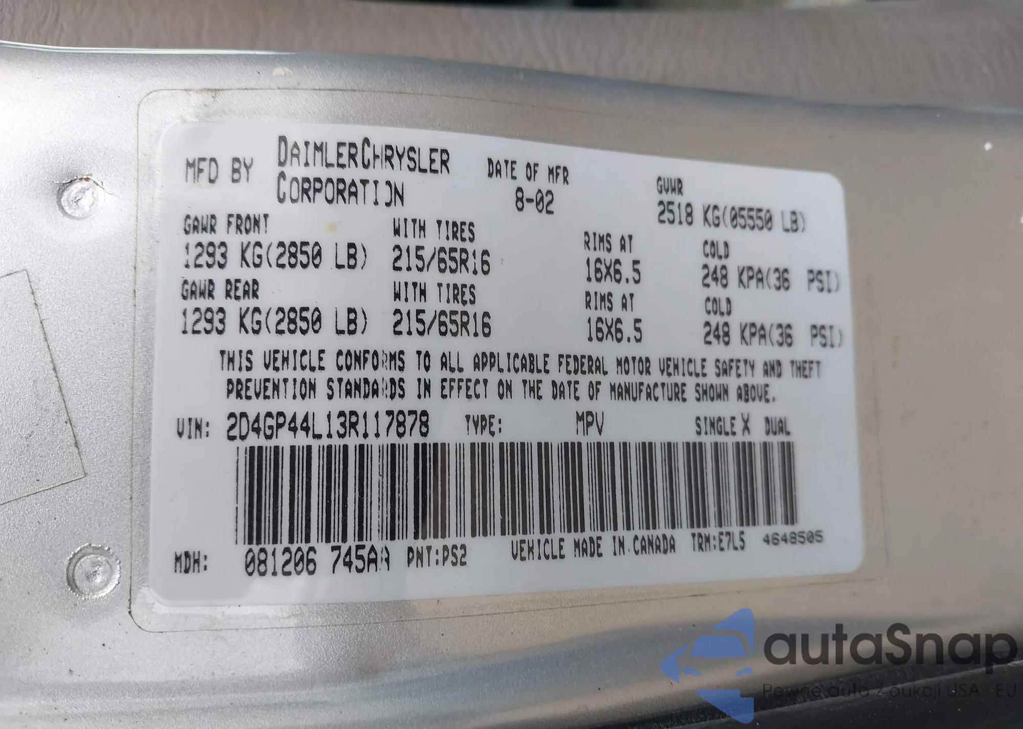 VIN: 2D4GP44L13R117878