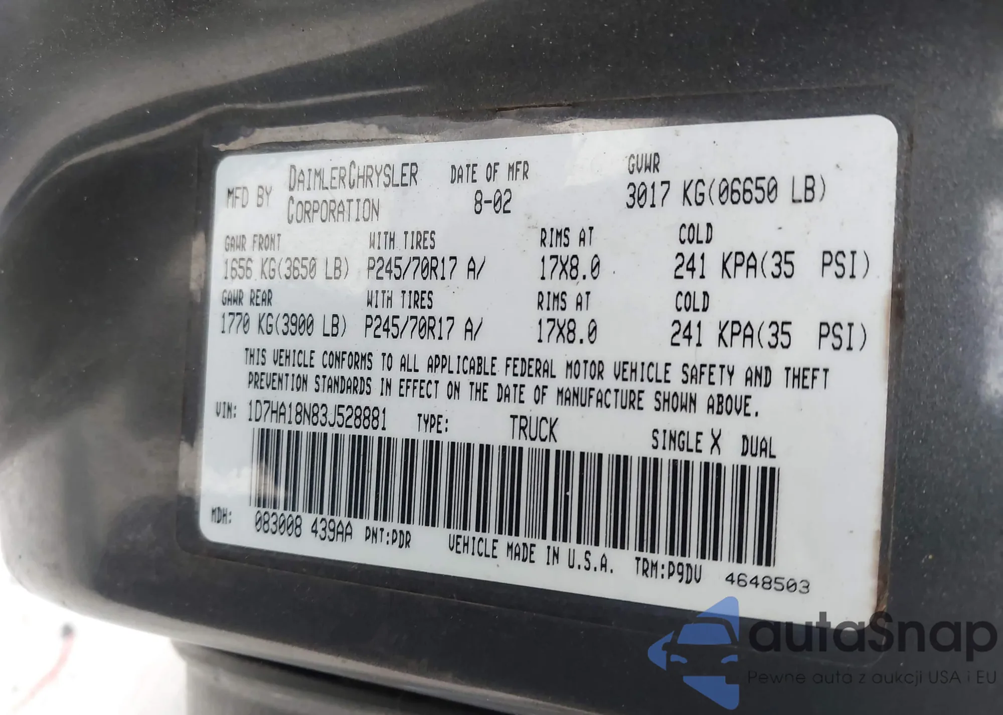 VIN: 1D7HA18N83J528881