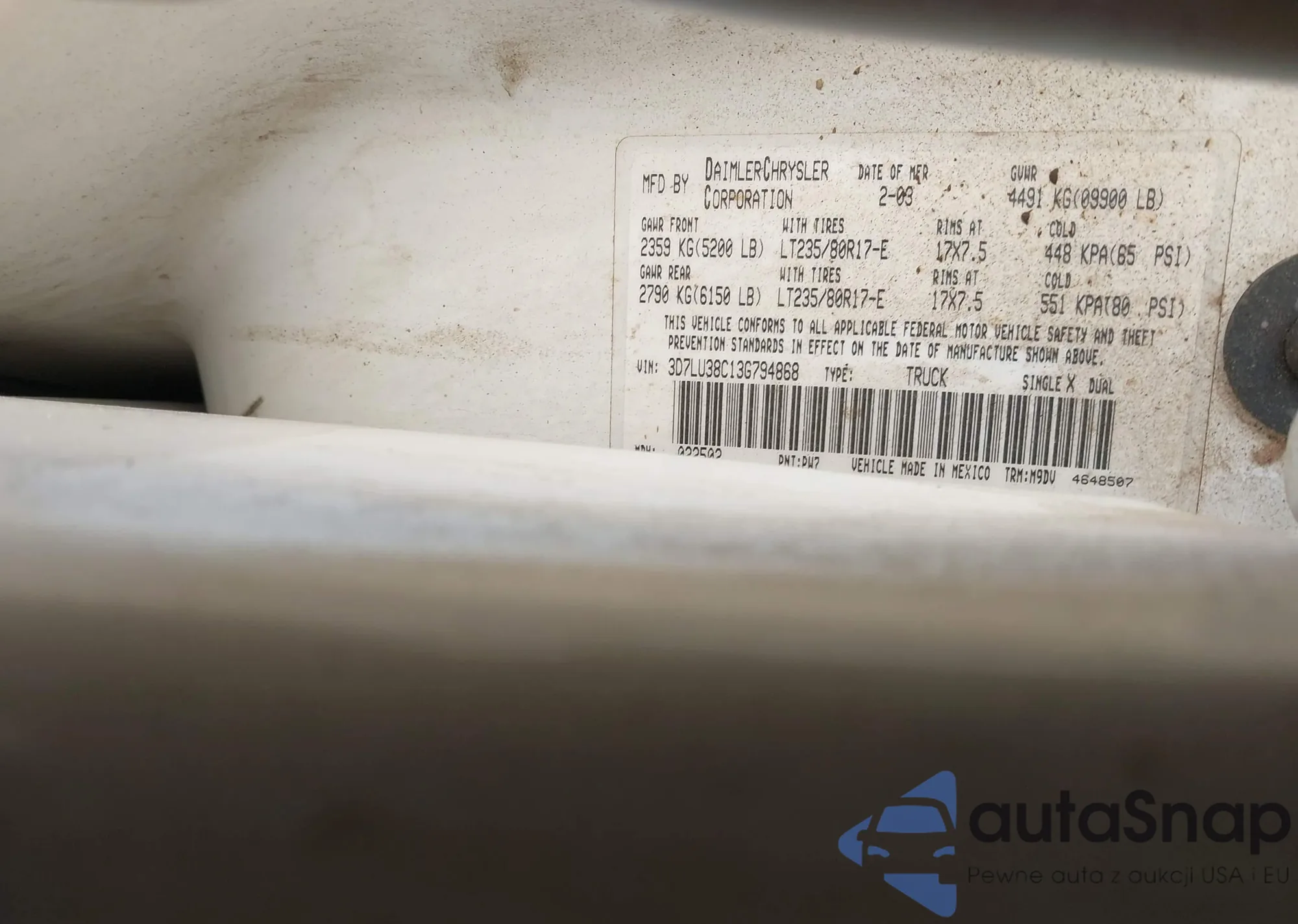 VIN: 3D7LU38C13G794868