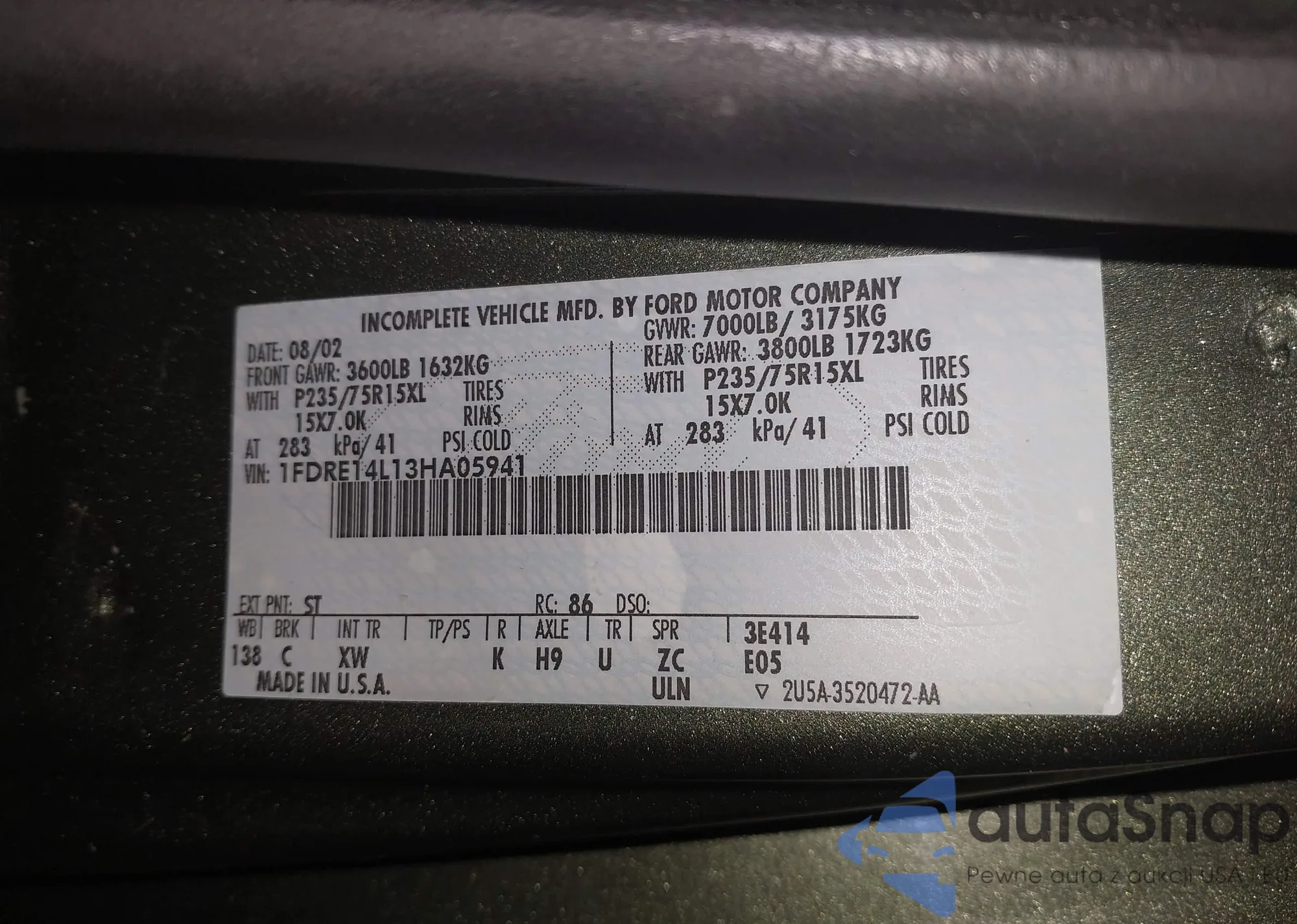 • VIN: 1FDRE14L13HA05941