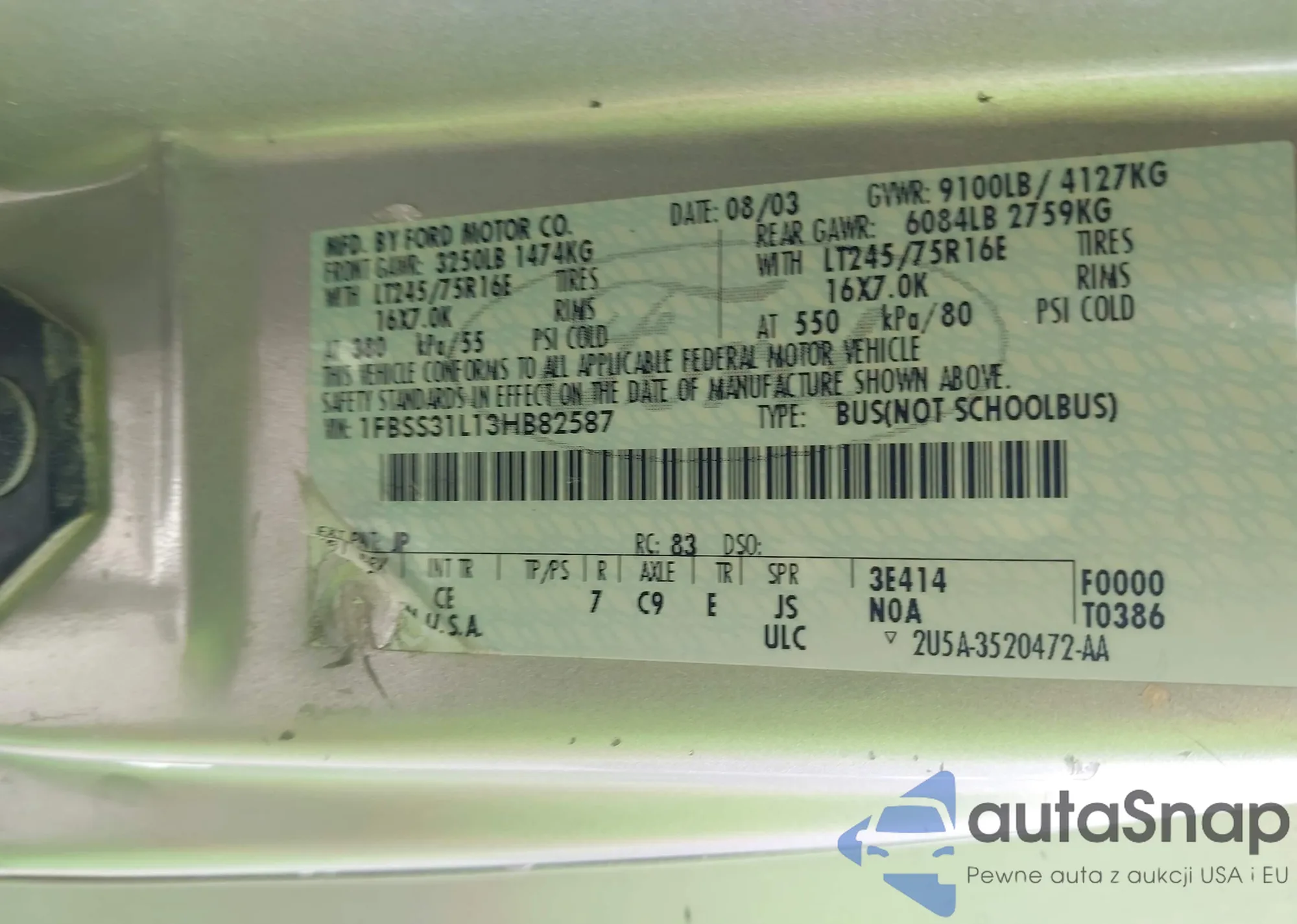 VIN: 1FBSS31L13HB82587