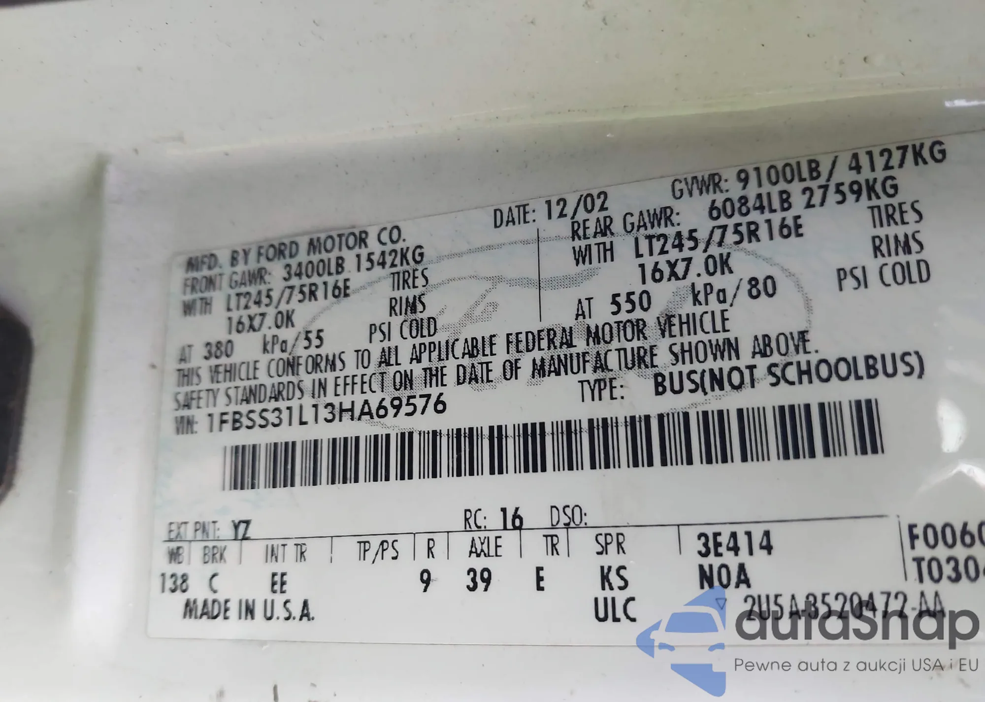 VIN: 1FBSS31L13HA69576