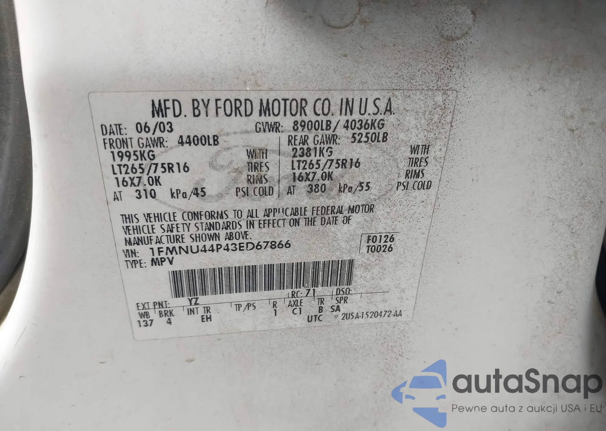 VIN: 1FMNU44P43ED67866