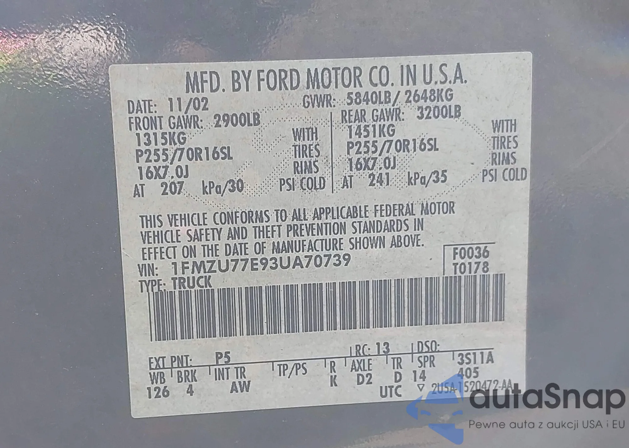 VIN: 1FMZU77E93UA70739