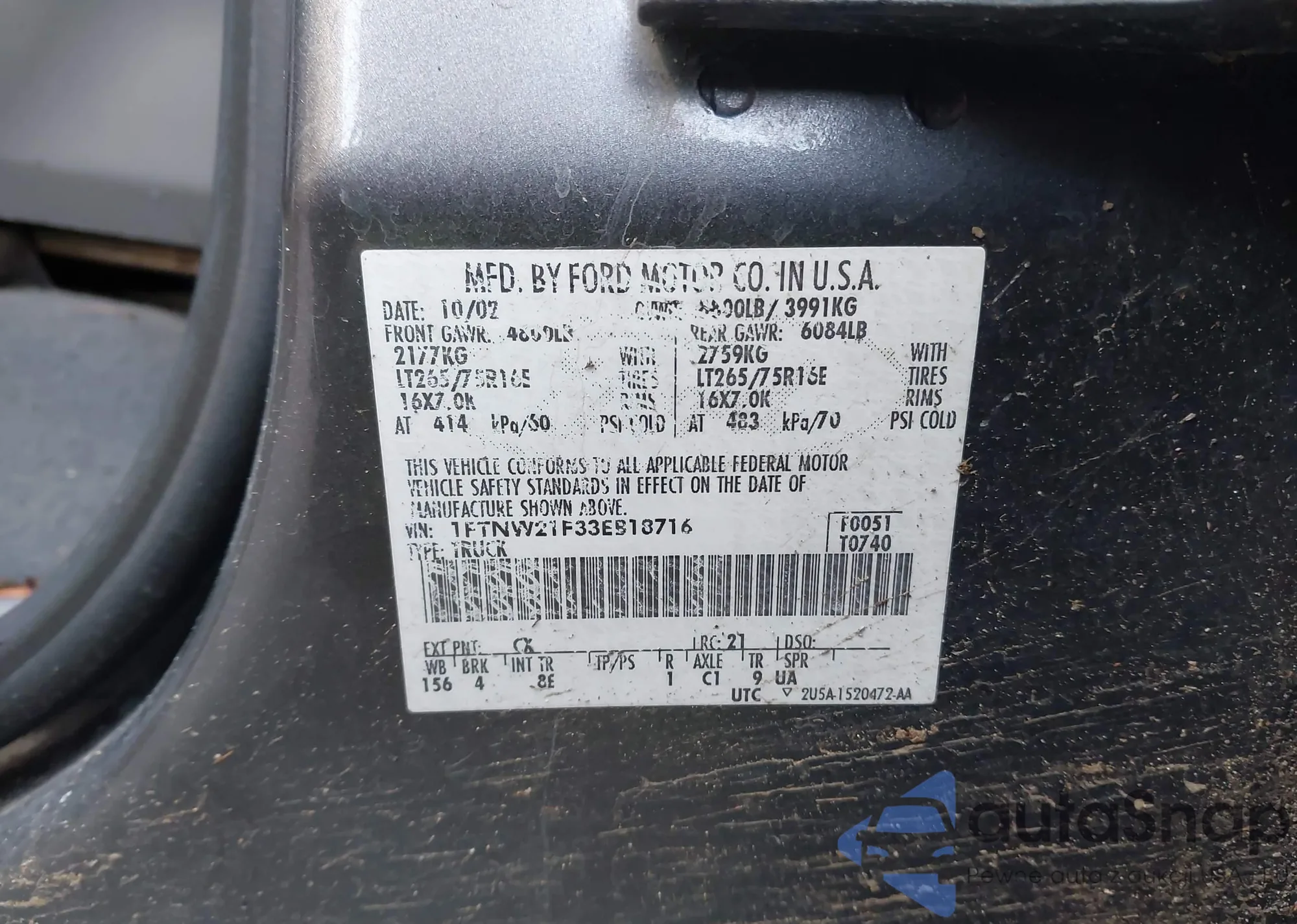 VIN: 1FTNW21F33EB18716