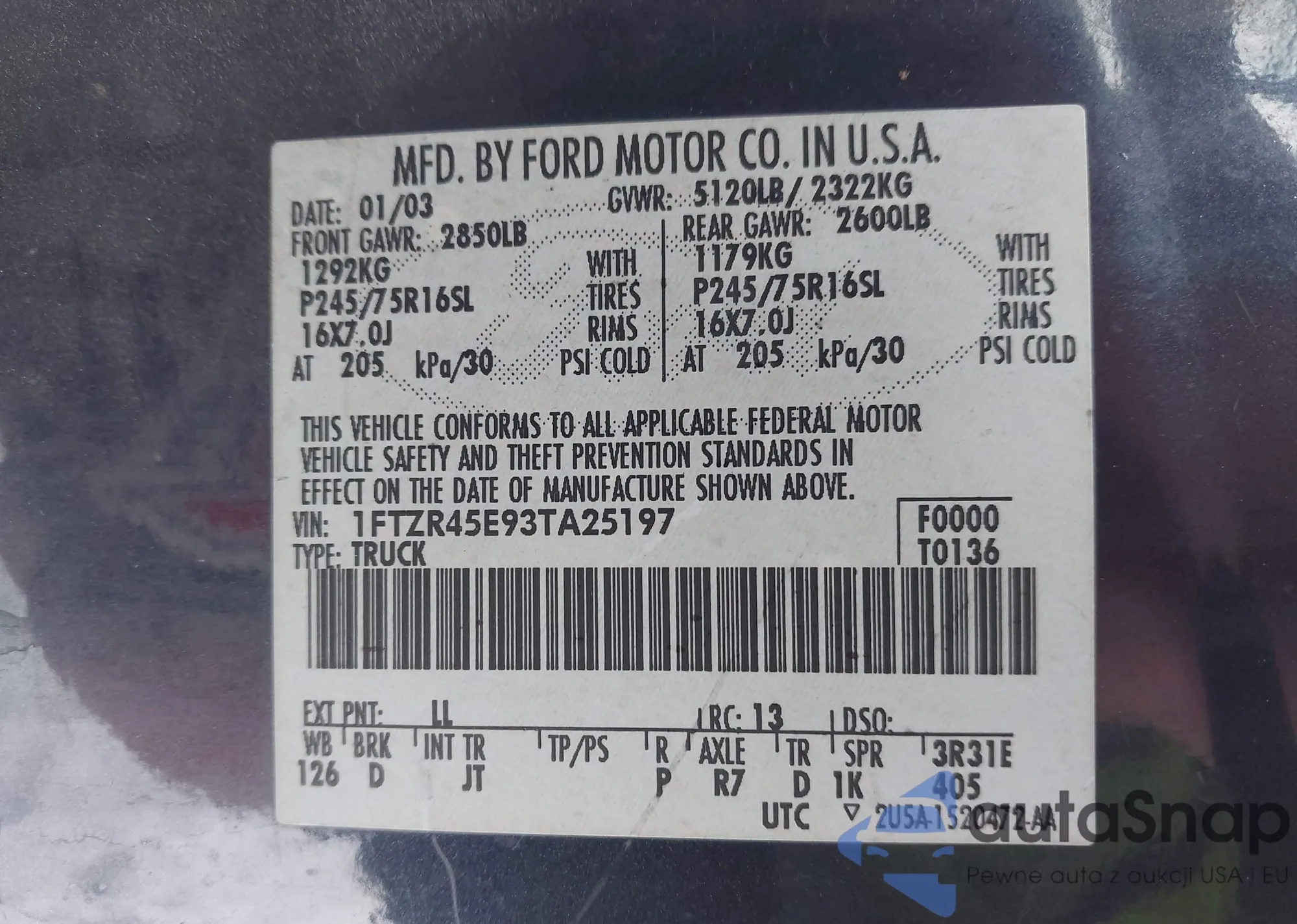 VIN: 1FTZR45E93TA25197