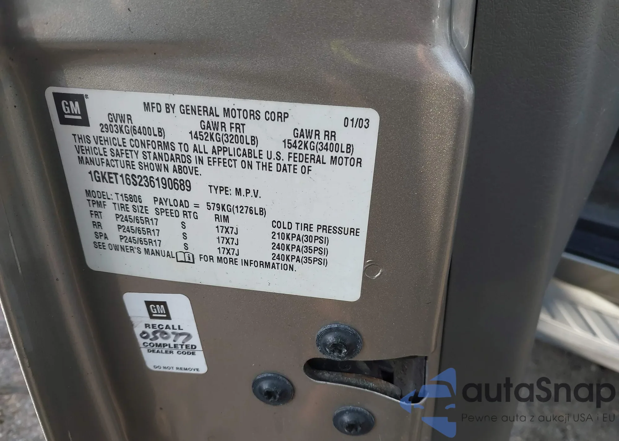 VIN: 1GKET16S236190689