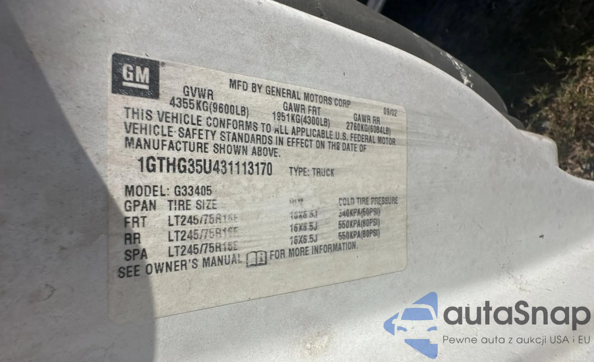 VIN: 1GTHG35U431113170