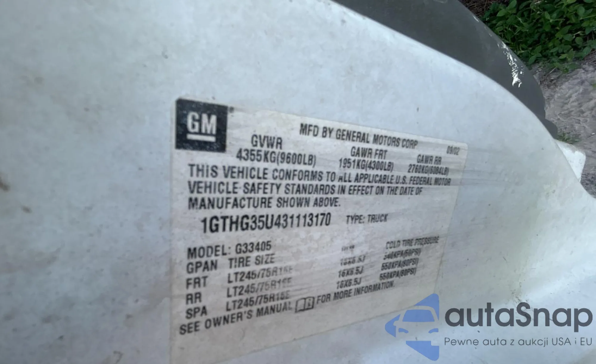 VIN: 1GTHG35U431113170
