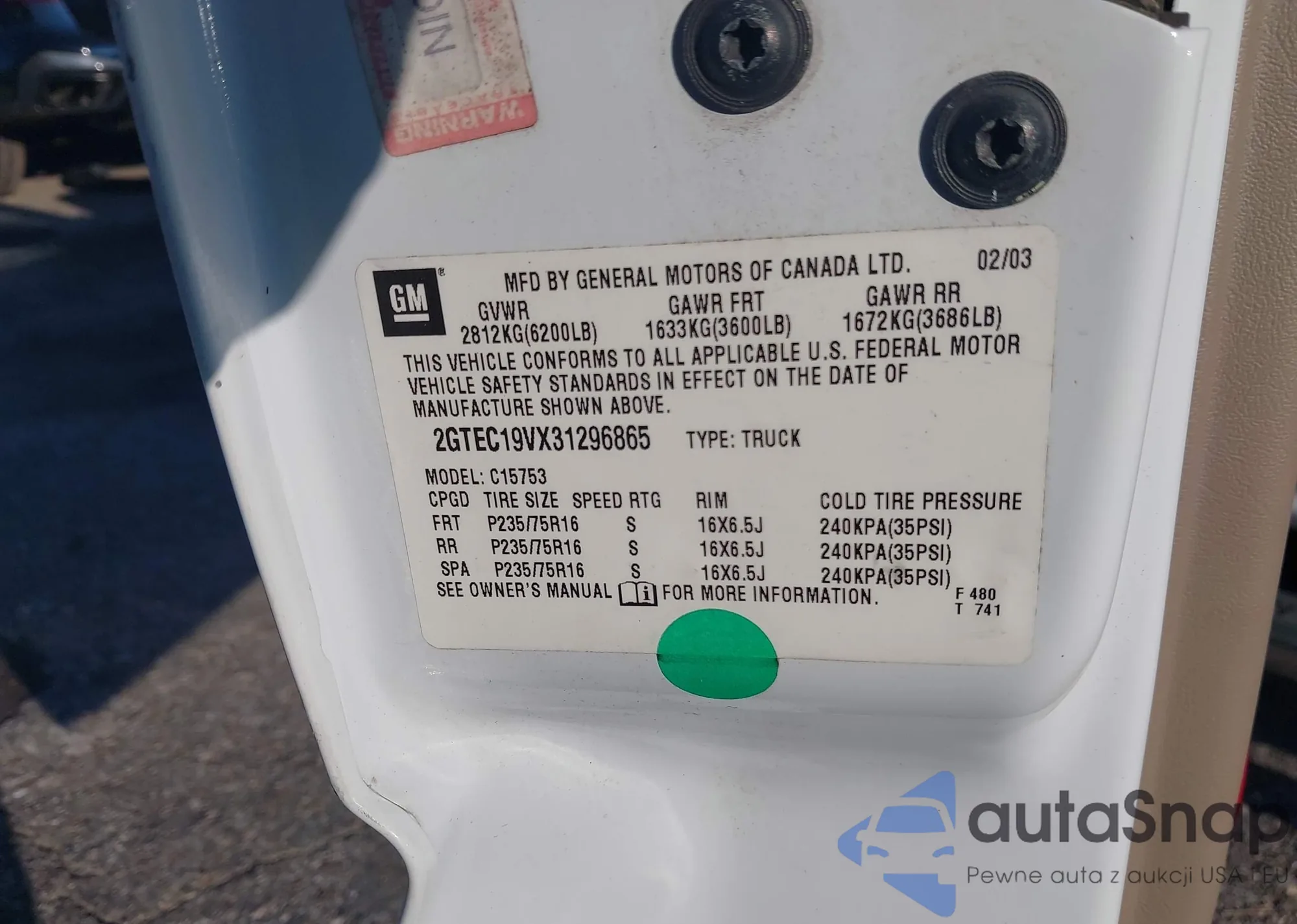 VIN: 2GTEC19VX31296865