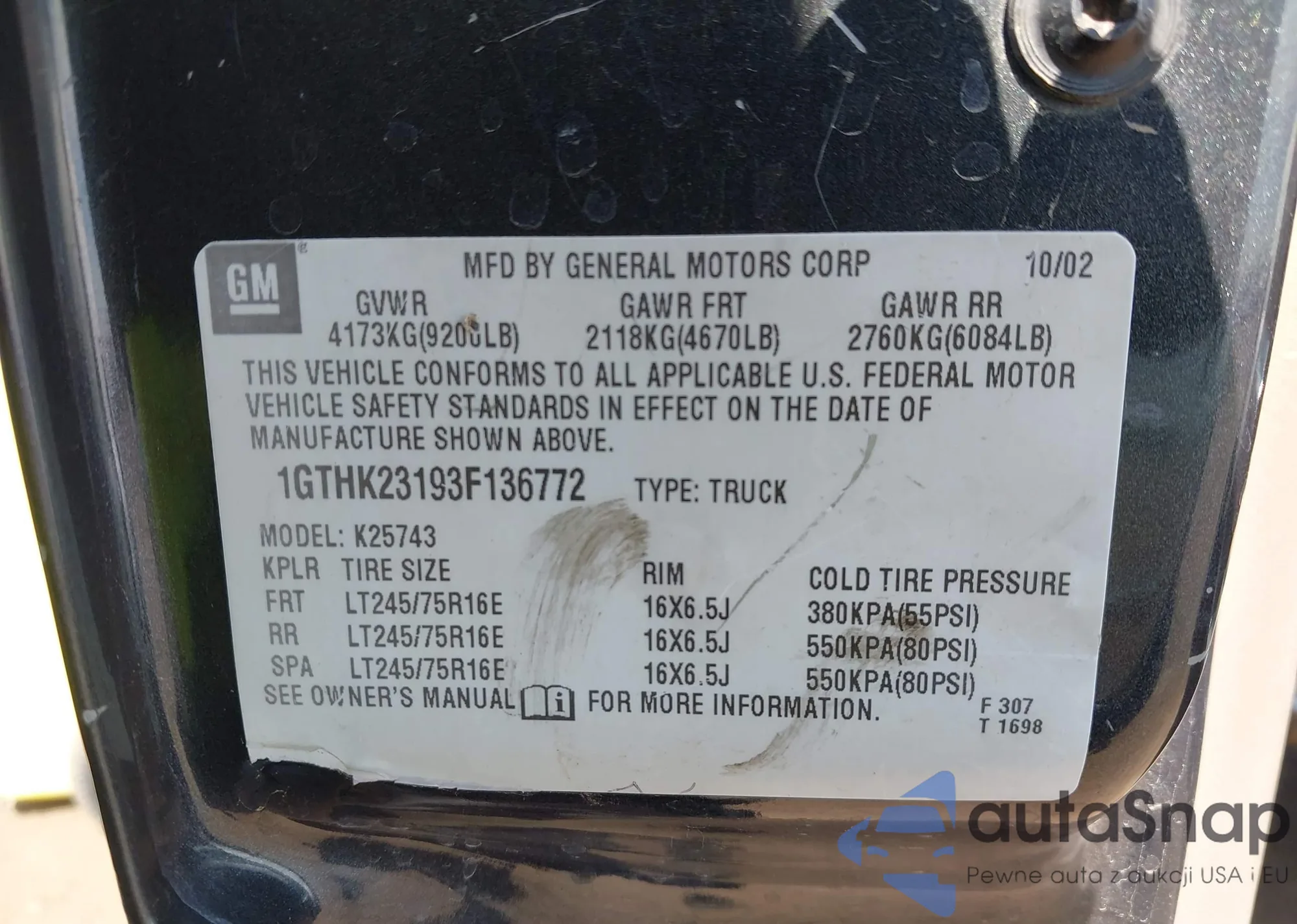 VIN: 1GTHK23193F136772