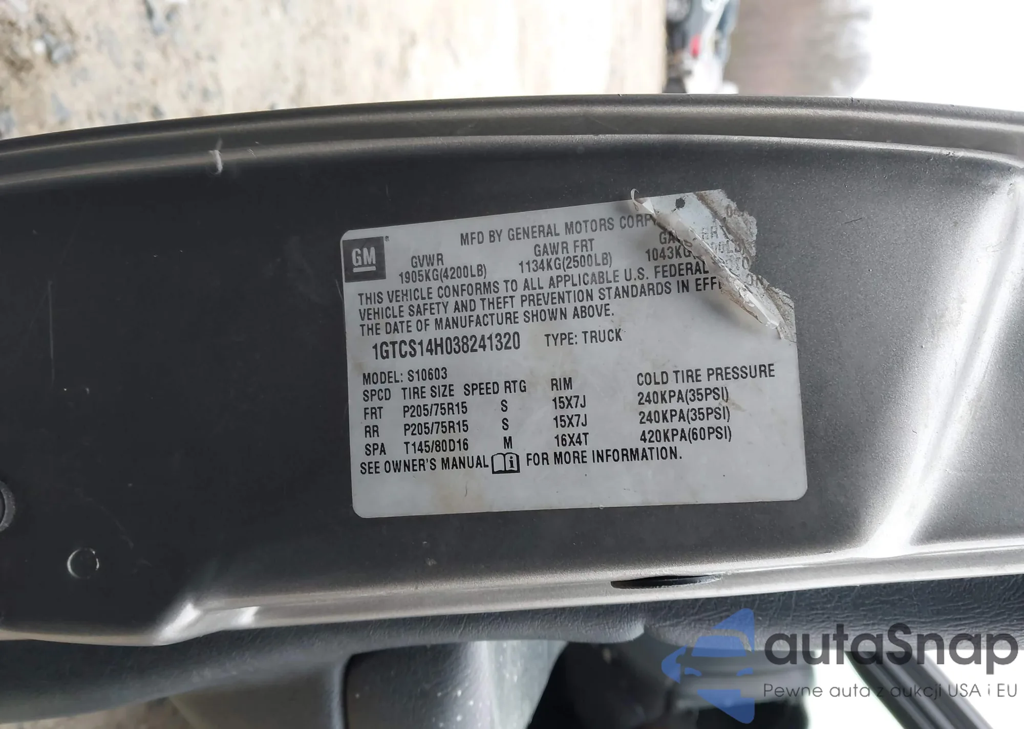 VIN: 1GTCS14H038241320