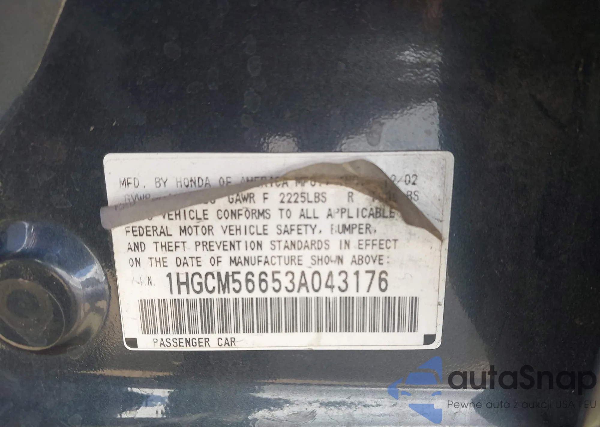 • VIN: 1HGCM56653A043176