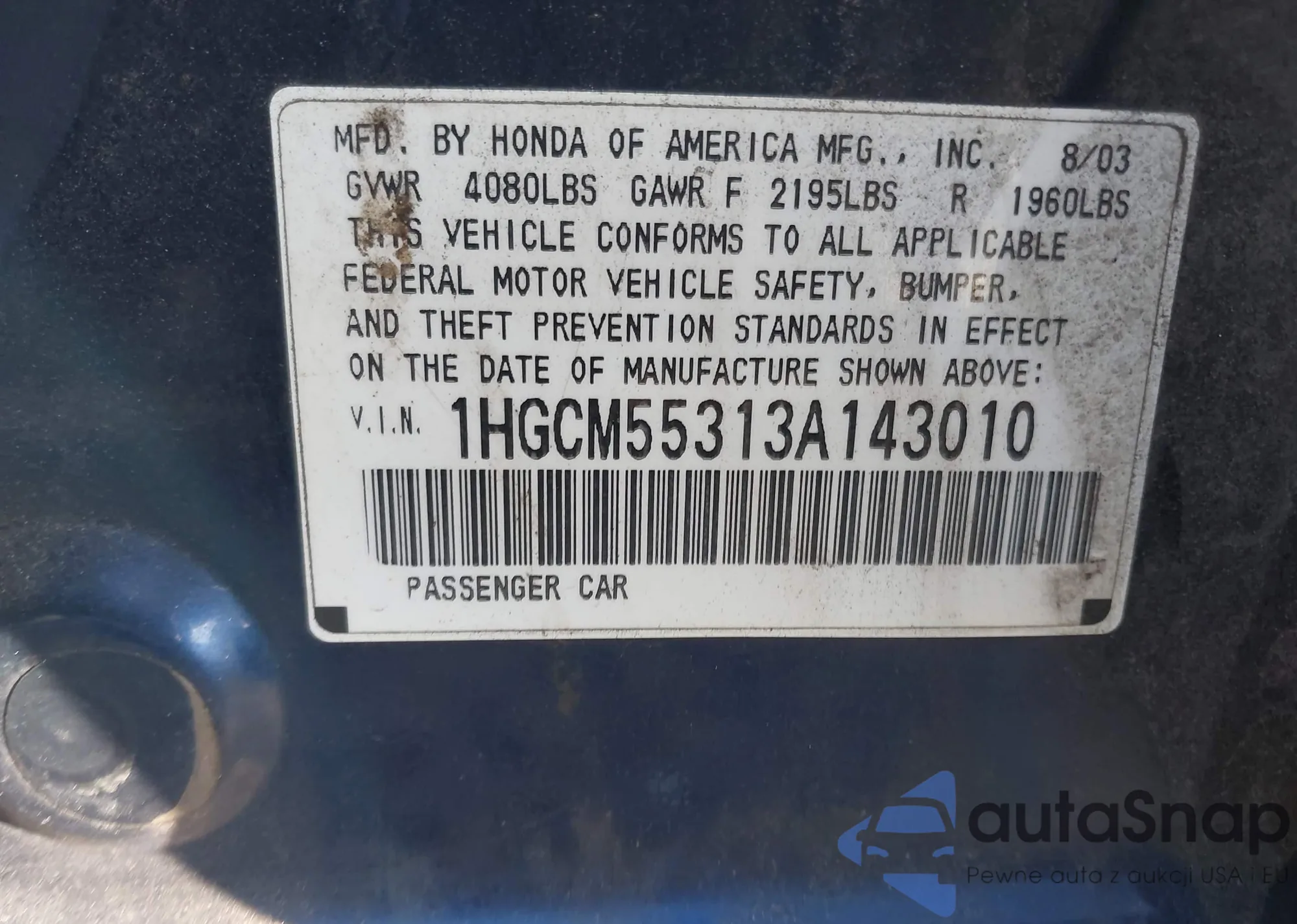 VIN: 1HGCM55313A143010