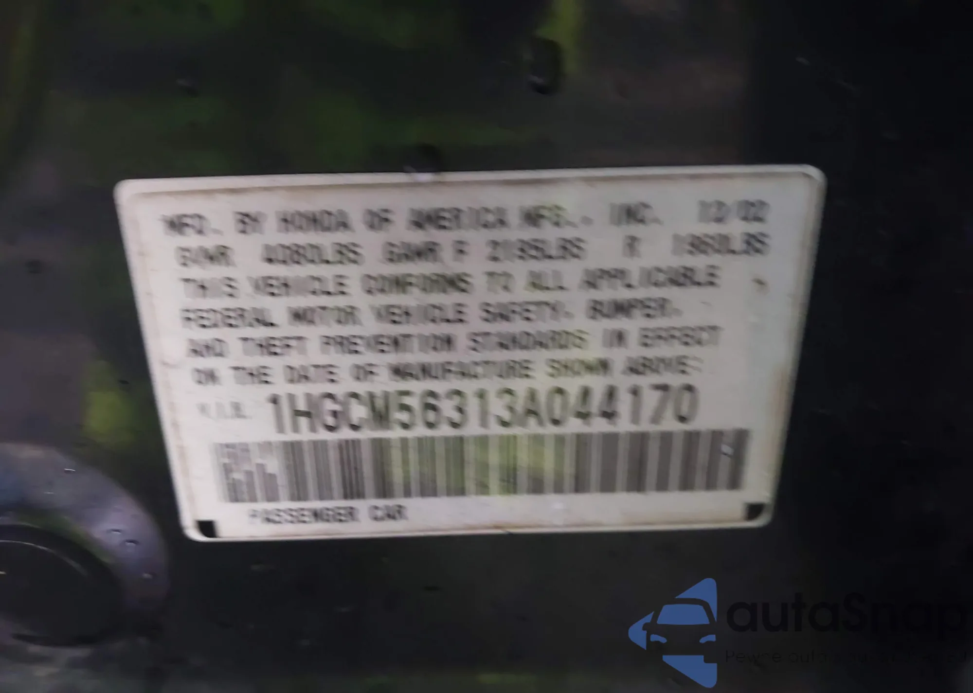 VIN: 1HGCM56313AO44170