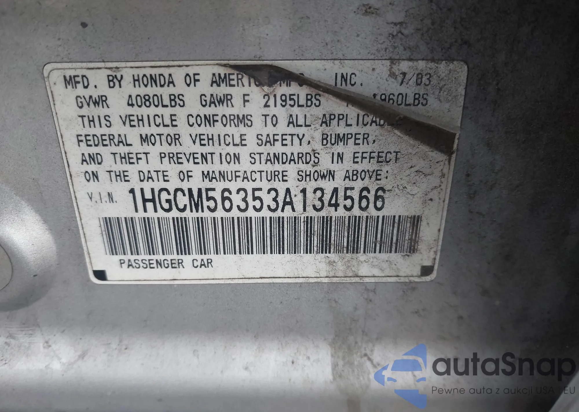 VIN: 1HGCM56353A134566