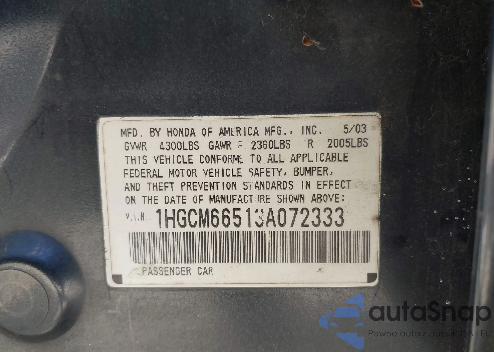 VIN: 1HGCM66513A072333