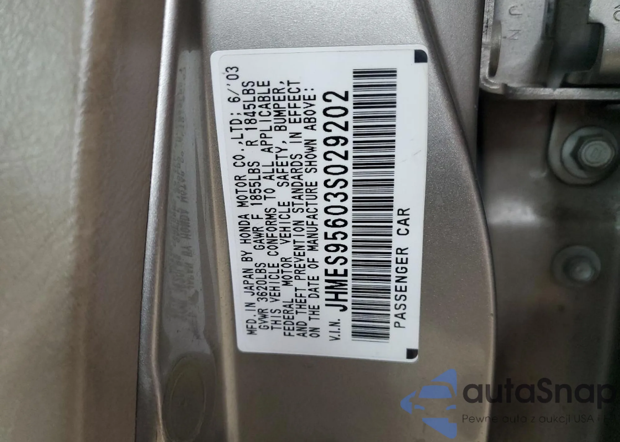 VIN: JHMES95603S029202
