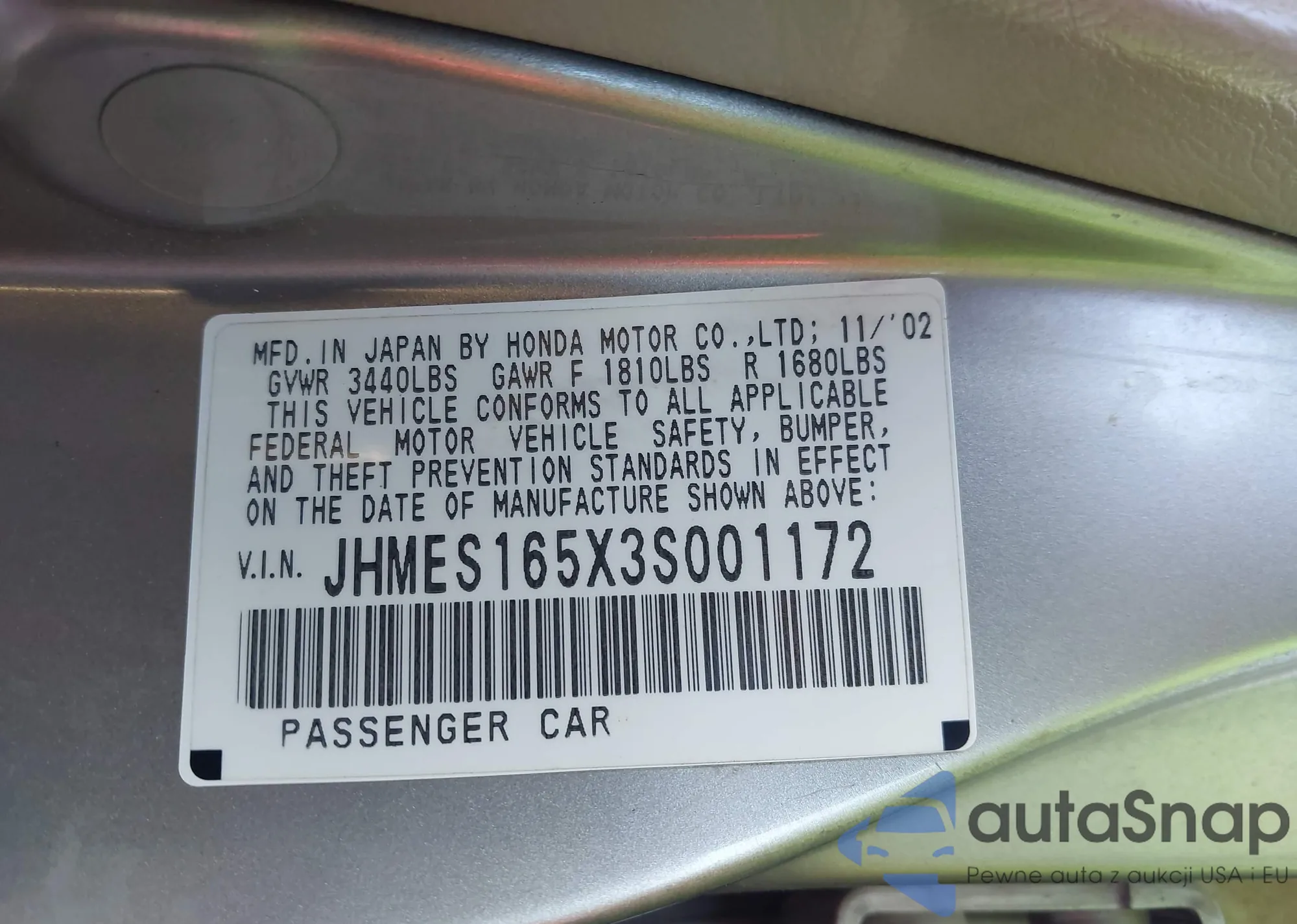 VIN: JHMES165X3S001172