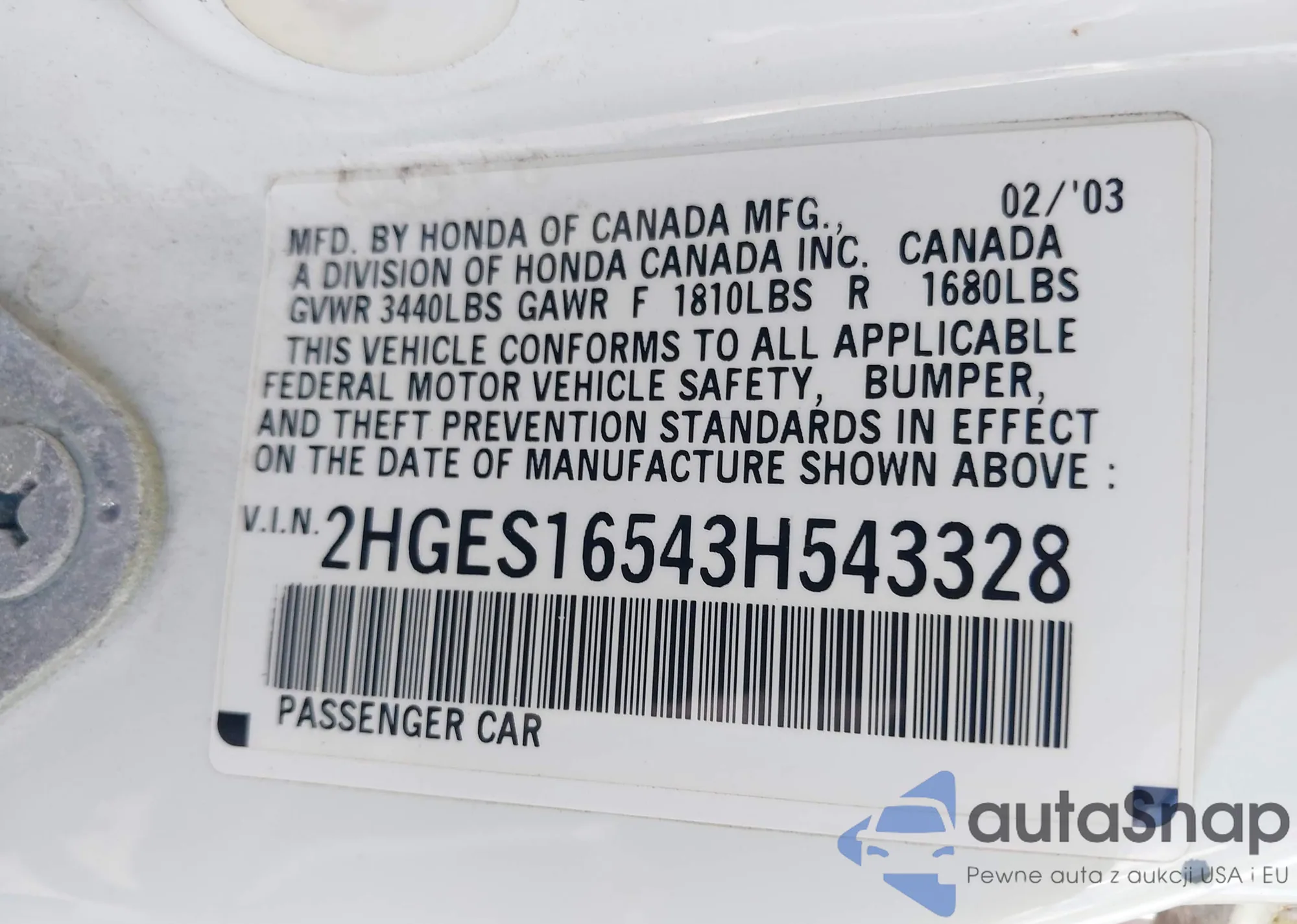 VIN: 2HGES16543H543328