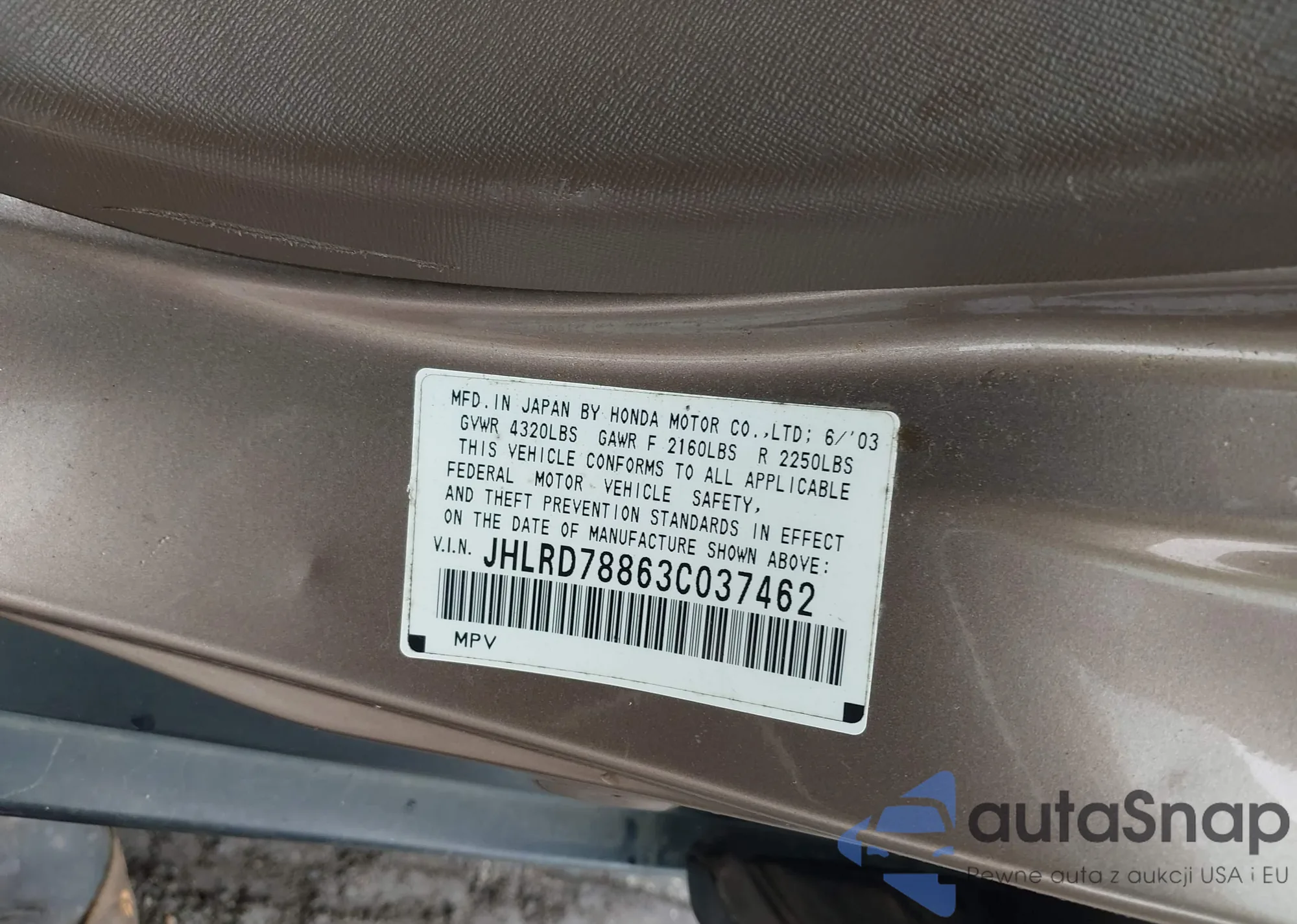 VIN: JHLRD78863C037462